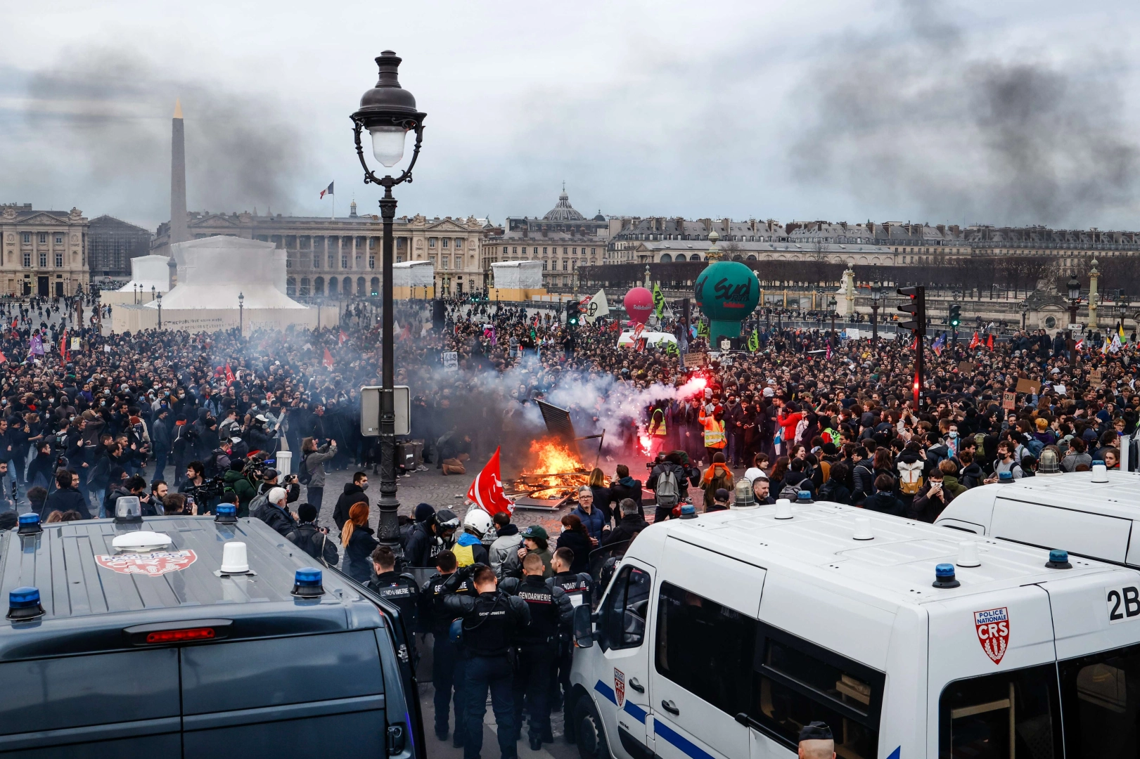 Fransa'da tepki çeken ve emeklilik yaşının kademeli olarak 64'e çıkarılmasını içeren reforma ilişkin yasa tasarısının Ulusal Meclis'te oylamaya sunulmadan onaylanması için Anayasa’nın 49. maddesinin 3. fıkrasının kullanılacağını açıklanmıştı. Fransa Başbakanı Elisabeth Borne tarafından yapılan açıklamanın ardından başkent Paris'te sokaklar karıştı. Reformun, Ulusal Meclis'te oylamaya sunulmadan geçmesine tepki gösteren binlerce protestocu Concorde Meydanı'nda bir araya geldi. Polis, kendisine taş atan öfkeli kalabalığı dağıtmak için göz yaşartıcı gaz kullandı.