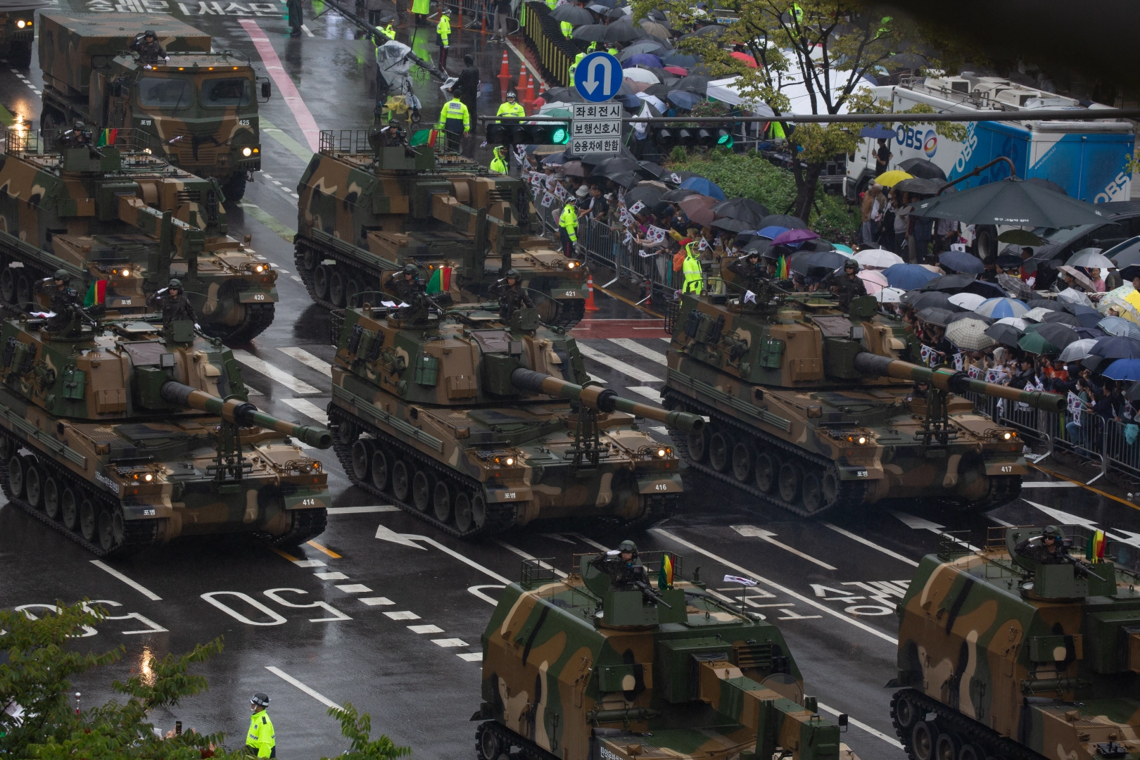 Güney Kore 10 yıl ardından ilk kez Seul'de Silahlı Kuvvetler Günü kapsamında askeri geçit töreni düzenleyerek Kuzey Kore'ye gözdağı verdi. Ülkenin son askeri teknolojilerinin sergilendiği törende 3 bin 700 asker yer aldı. Törene ilk kez ABD askeri de katıldı.