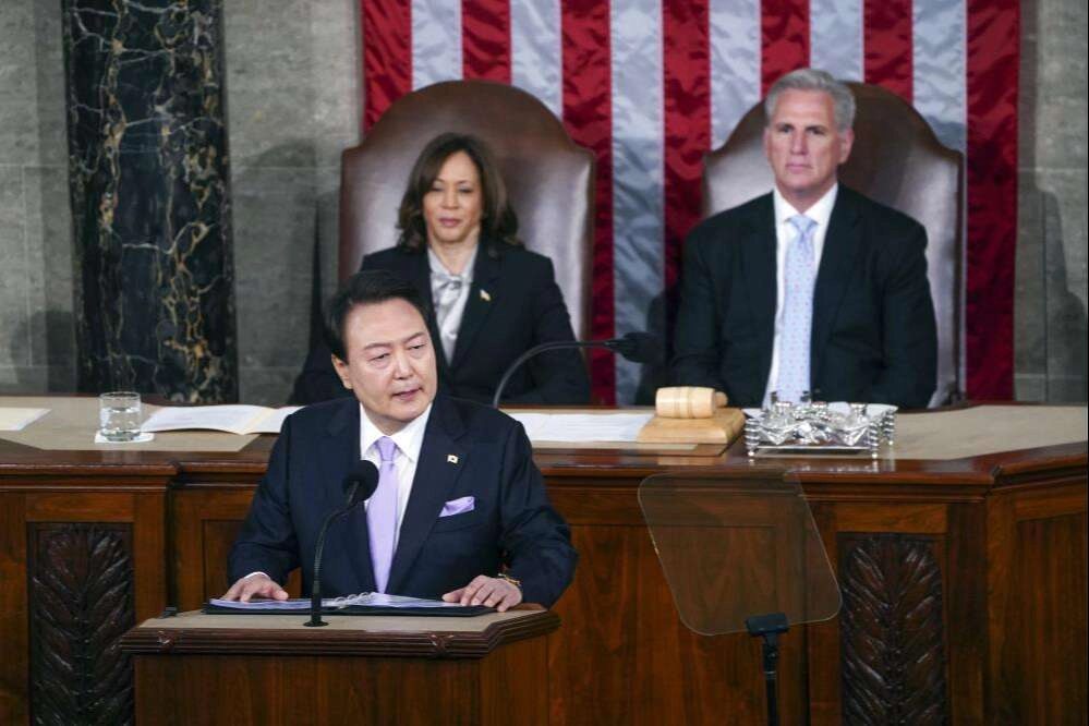 Güney Kore Devlet Başkanı Yoon Suk-yeol, 6 günlük ziyareti kapsamında ABD’deki temaslarını sürdürüyor. ABD Kongresine hitap eden Yoon, Kuzey Kore ile yaşanan nükleer anlaşmazlıklar ve Rusya-Ukrayna Savaşı hakkında konuştu. Kuzey Kore’nin askeri kışkırtmalarını kınayan Yoon, Güney Kore’nin Pyongyang’ın provokasyonlarına kararlılıkla yanıt vereceğini, ancak Kuzey Kore'nin nükleer silahlardan arındırılmasına yönelik diyalog için kapıyı açık tutacaklarını vurguladı. ABD Başkanı Joe Biden ile "genişletilmiş caydırıcılık" politikasını güçlendirme konusunda mutabık kaldıklarını hatırlatan Yoon, Washington-Seul ittifakının yanı sıra Güney Kore-ABD-Japonya arasındaki üçlü güvenlik iş birliğinin de artırılması gerektiğini ifade etti. Kuzey Kore’nin nükleer silah programı ve füze denemelerinin Kore Yarımadası ve ötesinde barış için ciddi bir tehdit oluşturduğunun altını çizen Yoon, "Kuzey Kore'yi davranışlarından caydırmak için ittifakın kararlılıkla birlik olması gerekiyor" dedi. Kuzey Kore'nin nükleer silah ve füze programının ülke nüfusunu ciddi bir ekonomik krize sürüklediğinin belirten Yoon, Kuzey Kore’deki insan hakları ihlallerinin ciddiyeti konusunda kongreden destek istedi. Güney Koreli lider “Kuzey Kore'deki insan hakları ihlalleri hakkında küresel farkındalık oluşturmalıyız, Kuzey Koreliler için özgürlüğü teşvik etme görevimizden vazgeçmemeliyiz” şeklinde konuştu. “UKRAYNA HALKININ ÖZGÜRLÜĞÜNÜ KORUMAK İÇİN ÇALIŞACAĞIZ” Rusya-Ukrayna Savaşına yönelik değerlendirmelerde de bulunan Güney Kore Devlet Başkanı Yoon, Rusya’nın Ukrayna’ya yönelik işgalini şiddetli kınadı. Yoon savaşı “uluslararası hukukun ihlali ve statükoyu tek taraflı bir şekilde zorla değiştirme girişimi" olarak niteledi. Özgürlük ve demokrasinin tehdit altında olduğunu vurgulayan Güney Koreli lider, Ukrayna halkının özgürlüğünü korumak ve yeniden yapılanma çabalarını desteklemek için aktif olarak çalışacaklarını ifade etti. Güney Koreli lider 1950 yılında ülkesinde yaşanan savaşa dikkat çekerek “Birlikte savaştık ve özgürlüğümüzü koruduk. Kore'nin deneyimi bize demokrasilerin dayanışmayı sürdürmesinin ne kadar önemli olduğunu gösterdi, Kore özgür dünya ile dayanışma içinde olmayı sürdürecek” dedi.