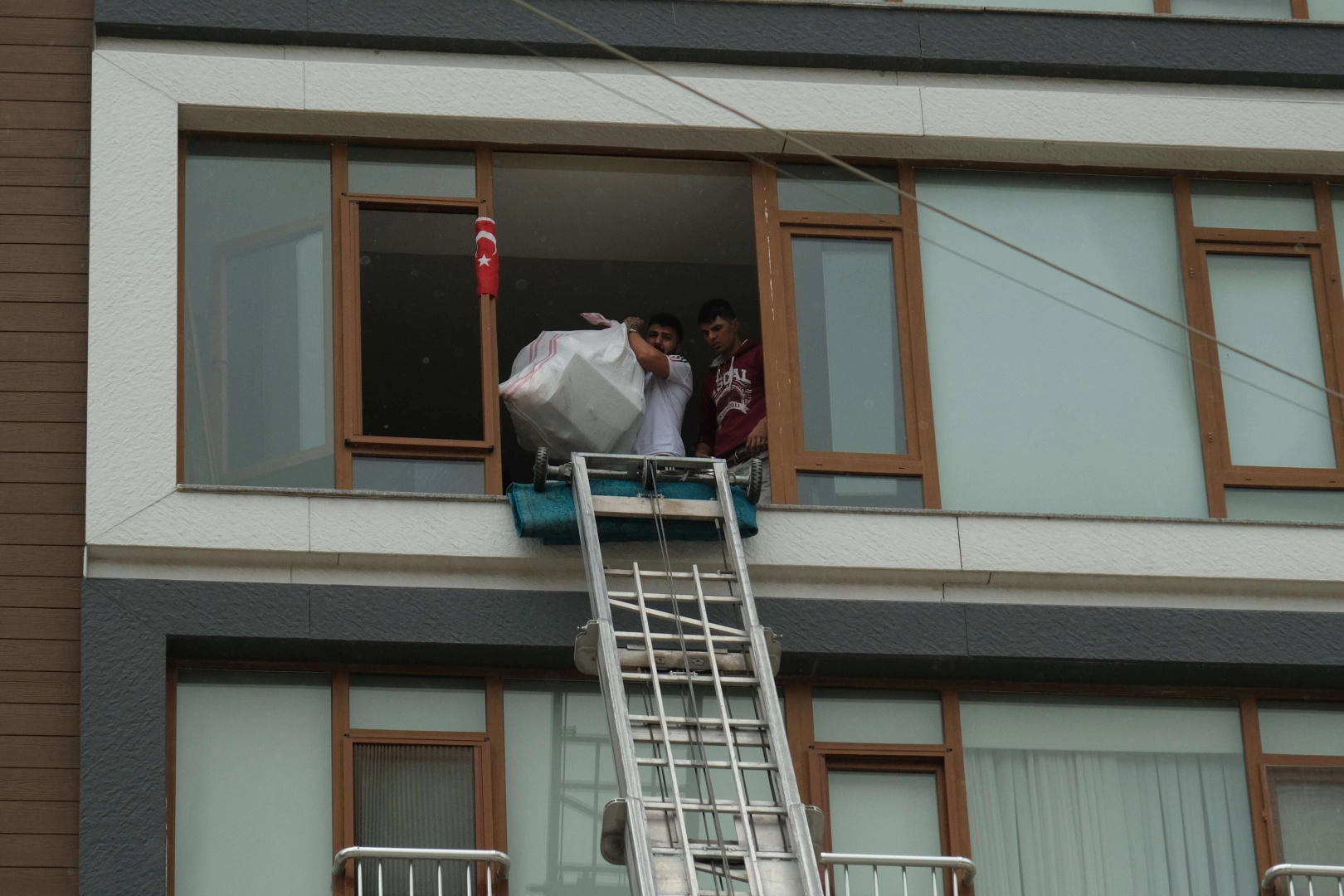 “EŞYALARINI ÇIKARANLARIN ÇOĞU UZAK YERLERE GİDİYOR” Ağır hasarlı bir binadan eşyaların tahliyesini gerçekleştiren bir nakliye firmasının çalışanı olan Muhammed Yıldırım da, “Müşterilerimize yardımcı olmak, eşyaları kurtarmak için kendimizi riske atıyoruz. Eşyaların tamamını evden çıkaramıyoruz. Duvarlar ya yıkık ya da evlerin içerisi kötü durumda. Depremin ardından ilk zamanlarda günde 5-6 ev taşıyorduk ama şimdilerde 5-6 kişilik ekip halinde günde 2-3 tane evi taşıyoruz. Fiyatlar 6-7 bin civarında başlıyor. Eşyaları toplayıp paketleme yapıyoruz. Eşyalarını çıkaranların çoğu uzak yerlere gidiyor. Ya dükkan, ya ev kiralıyor ya da köylere gidiyorlar” diye konuştu.