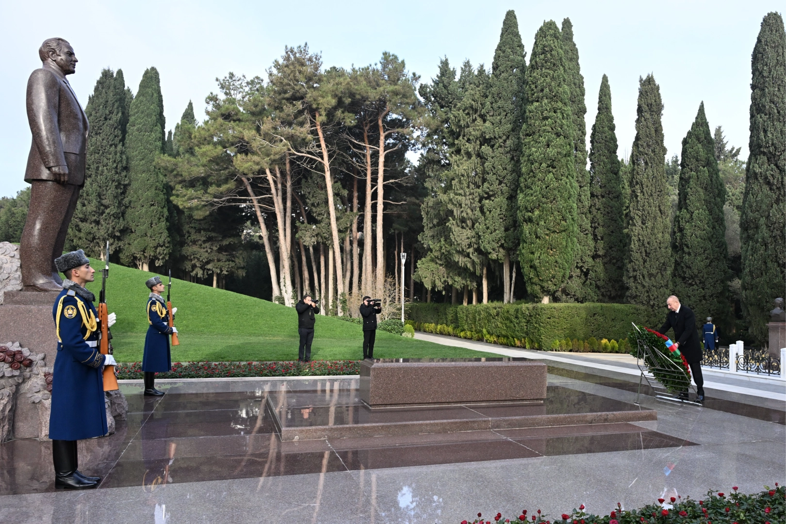 Azerbaycan'da eski Cumhurbaşkanı ve milli lider Haydar Aliyev'in ölümünün üzerinde 21 yıl geçti. Aliyev'in vefatının yıldönümü dolayısıyla başkent Bakü ve ülke genelinde anma töreni düzenlendi. Azerbaycan Cumhurbaşkanı İlham Aliyev, Bakü'de babası Haydar Aliyev'in Fahri Hiyaban'da bulunan mezarını eşi Mehriban Aliyeva ile birlikte ziyaret ederek, çelenk bıraktı.