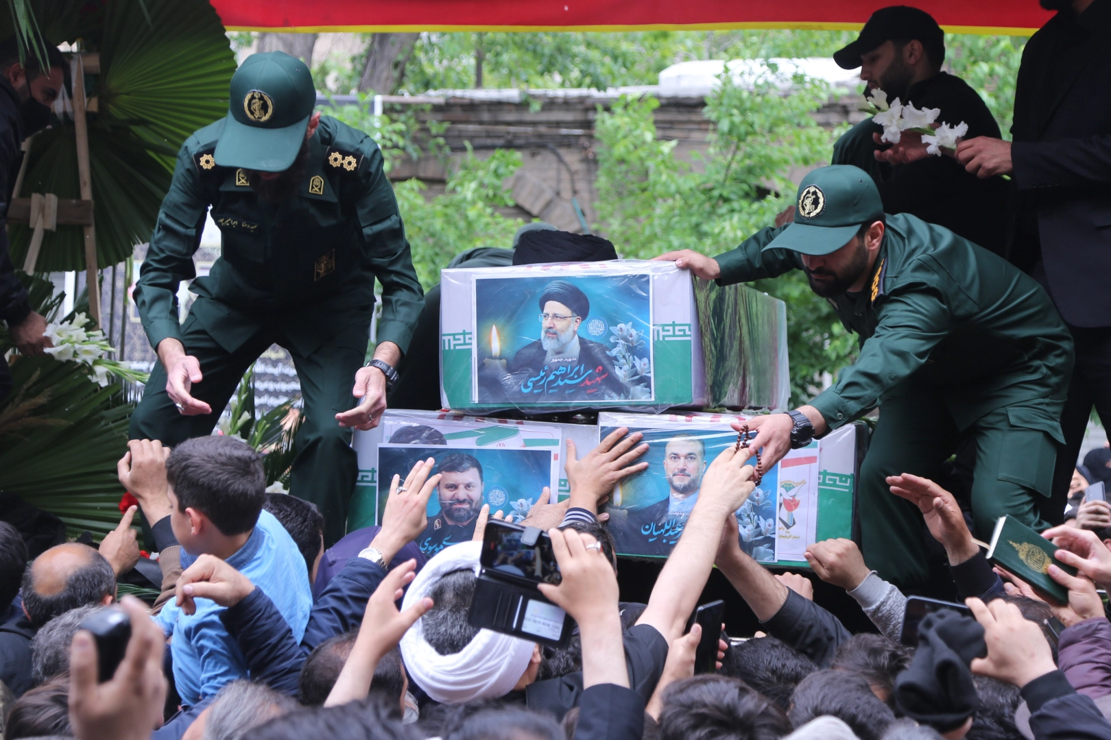 Helikopter kazasında hayatını kaybeden Cumhurbaşkanı İbrahim Reisi, Dışişleri Bakanı Hüseyin Emir Abdullahiyan ve diğer yetkililer için Tebriz’de cenaze töreni gerçekleştirildi.İran Cumhurbaşkanı İbrahim Reisi'nin 3 gün sürecek cenaze töreni başladı. Geçtiğimiz pazar günü helikopter kazasında hayatını kaybeden Cumhurbaşkanı Reisi, Dışişleri Bakanı Hüseyin Emir Abdullahiyan, Doğu Azerbaycan Valisi Malik Rahmeti, Tebriz Cuma İmamı Ayetullah Ali Haşim, Reisi’nin koruması Seyit Mehdi Musevi, pilotlar Tahir Mustafavi ve Muhsin Deryanuş ile teknik personel Behruz Gadimi için Tebriz kentinde cenaze töreni gerçekleştirildi. On binlerce İranlı, cenazelerin geçişi sırasında Reisi'nin posterlerini taşıyarak cumhurbaşkanlarına veda etti.