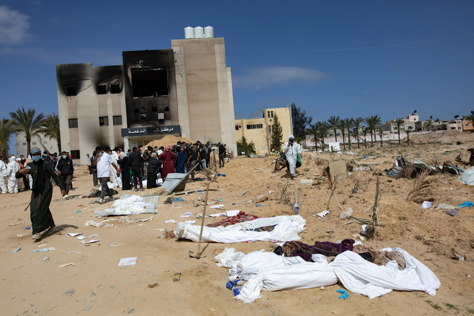 İsrail ordusunun 7 Nisan'da Han Yunus kentinden çekilmesinden ardından bulunan toplu mezarlarda çalışmalar sürüyor. Han Yunus Sivil Savunma Direktörü Yamen Ebu Süleyman yaptığı açıklamada, Nasser Hastanesi'nin bahçesindeki toplu mezarda 35 kişinin daha cansız bedenine ulaşıldığını, şu ana kadar bulunan ceset sayısının 310'a yükseldiğini belirtti. Bazılarının elleri ve ayakları bağlı halde bulunduğunu vurgulayan Süleyman, "infaz izleri" olduğunu aktardı. Süleyman, "Onların diri diri mi gömüldüğünü yoksa infaz mı edildiğini bilmiyoruz. Cesetlerin çoğu çürümüş durumda" ifadelerini kullandı.