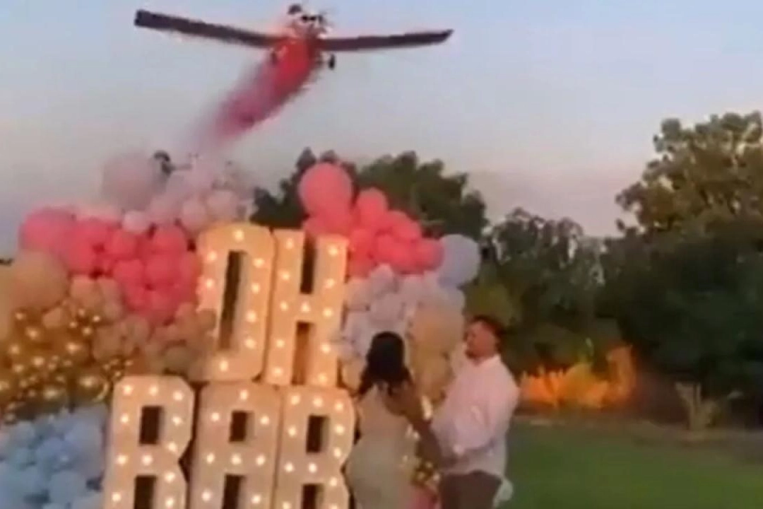 Partiye katılanlar tarafından cep telefonu kamerasıyla kaydedilen görüntülerde uçağın parti alanına doğru alçalıp pembe tozu bıraktıktan sonra ani bir şekilde yükselişe geçtiği ardından bir kanadının kırılmasıyla düştüğü görüldü.