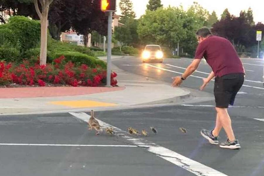 Şeir polisinden yapılan açıklamaya göre, 41 yaşındaki Casey Rivara Sacramento'nun yaklaşık 40 kilometre kuzeydoğusundaki Rocklin'de bir ördek ailesinin karşıya geçmeye çalıştığını gördü.