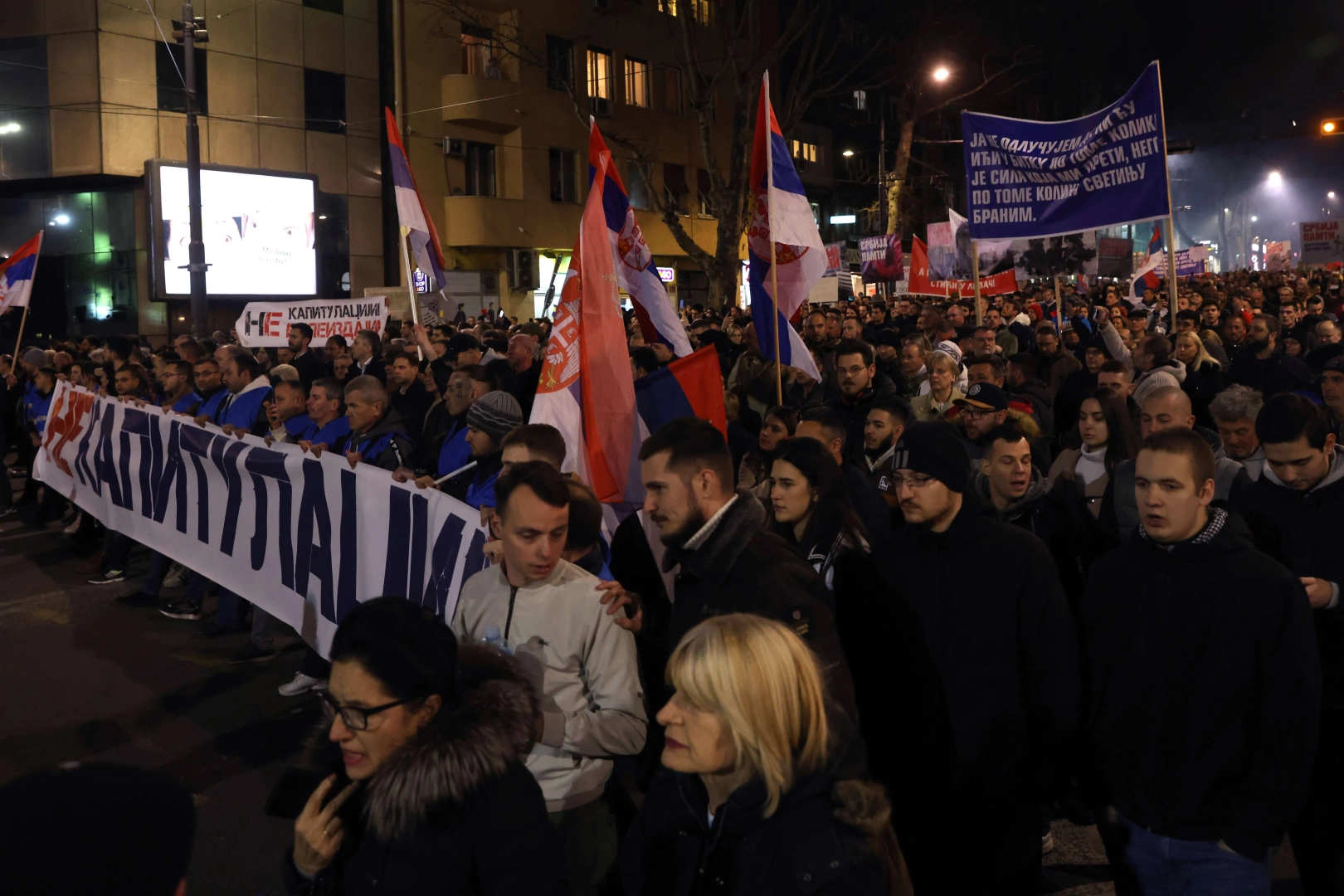 Cumhurbaşkanlığına yürüyen binlerce gösterici, Fransız-Alman Planının reddedilmesi, Cumhurbaşkanı Vucic’in derhal istifa etmesi ve erken seçime gidilmesini talep etti. Anlaşmanın Kosova'nın bağımsızlığının tanınması anlamına geldiğini savunan protestocular, Sırbistan bayrakları ile “Kosova, Sırbistan’ın kalbi ve ruhudur”, "Kosova satılık değil", “Teslimiyete hayır” yazılı pankartlar taşıdı. Çevre illerden Belgrad’daki protestoya katılmak üzere otobüslerle gelenlerin ise yolda polis engeline takıldığı iddia edildi.