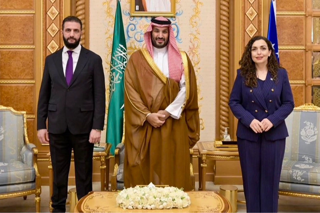 Suriye ve Kosova'dan heyetler, Suudi Arabistan'ın başkenti Riyad'da Suudi Arabistan Veliaht Prensi Muhammed bin Selman'ın da katılımıyla üçlü toplantıda bir araya geldi. Toplantıda, karşılıklı resmi tanıma, işbirliği ve ortak anlayışın geliştirilmesine ilişkin başlıklar ele alındı. Toplantı sonrasında Suriye Dışişleri Bakanlığı'ndan yapılan yazılı açıklamada, "Suriye, halkların kendi geleceğini tayin etme hakkına olan inancından ve Balkanlar'da barış ile istikrarın güçlendirilmesine yönelik kararlılığından hareketle, Kosova'yı bağımsız ve egemen bir devlet olarak tanımaktadır" ifadelerine yer verildi. Açıklamada, alınan kararın Suriye'nin dünyadaki farklı ülkelerle iş birliği köprülerini genişletme ve dostane ilişkileri geliştirme politikası çerçevesinde olduğu vurgulandı. Ayrıca, Suudi Arabistan'ın yapıcı rolüne dikkat çekilerek, "Riyad yönetiminin görüş ayrılıklarını yakınlaştırma ve diyalogu destekleme yönündeki çabaları bu kararın alınmasında uygun şartları oluşturmuştur" denildi. Şam yönetimi, Kosova ile en kısa sürede diplomatik ilişkiler kurmayı ve siyasi, ekonomik ve kültürel alanlarda iş birliğini geliştirmeyi hedeflediğini bildirdi. Osmani'den eş-Şara'ya teşekkür