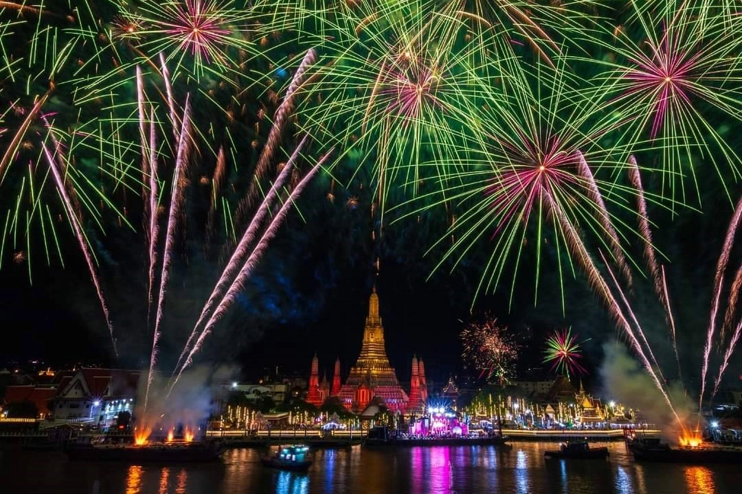 Tayland, TSİ 20.00’da 2024 yılına coşkuyla girdi. Başkent Bangkok’ta şehrin çeşitli bölgelerinde düzenlenen etkinliklerde yerel halk ve yabancı turistler yeni yılın gelişini renkli görüntülerle kutladı. Başkentin geleneksel kutlama alanlarından Icon Siam, Central World ve Wat Arun Tapınağı’nda gerçekleşen etkinliklere yerel ve yabancı katılımcılar büyük ilgi gösterdi. Bangkok’un Chao Phraya Nehri’nde yer alan Icon Siam’da düzenlenen kutlamalarda çeşitli konserler, yarışmalar, dron şov ve dans gösterilerinin yanı sıra 50 bin havai fişek ile oldukça görkemli bir geri sayım gerçekleştirildi. Tayland’ın güney bölgelerinde ise yeni yıl kutlamaları sahil bölgelerinde ve halk plajlarında yapıldı. Hava sıcaklığının son günlerde 30 derecenin üzerinde seyrettiği Phuket, Krabi ve Pattaya gibi tatil şehirlerinde düzenlenen yılbaşı kutlamalarında turistler doyasıya eğlendi.