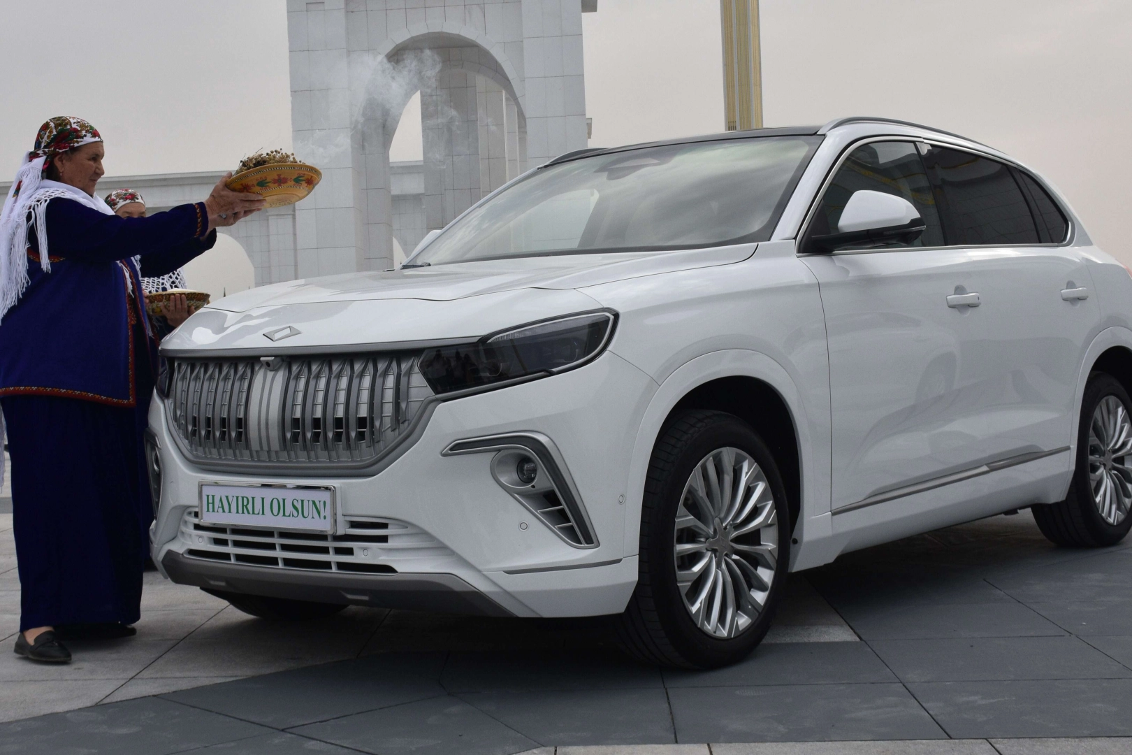 Teslim alınan akıllı cihazlar Türkmenistanlılar tarafından büyük ilgi gördü. Türkmenistan gelenekleri gereği yöresel kıyafetli kadınlar, cihazların nazardan korunması için üzerlik otu tütsüsünü araçların çevresinde gezdirdi. Deve Yününden yapılan “Alaca” isimli nazarlık da Togg’ların direksiyonuna bağlandı. Aracın bereket getirmesi için de üzerine un serpildi.