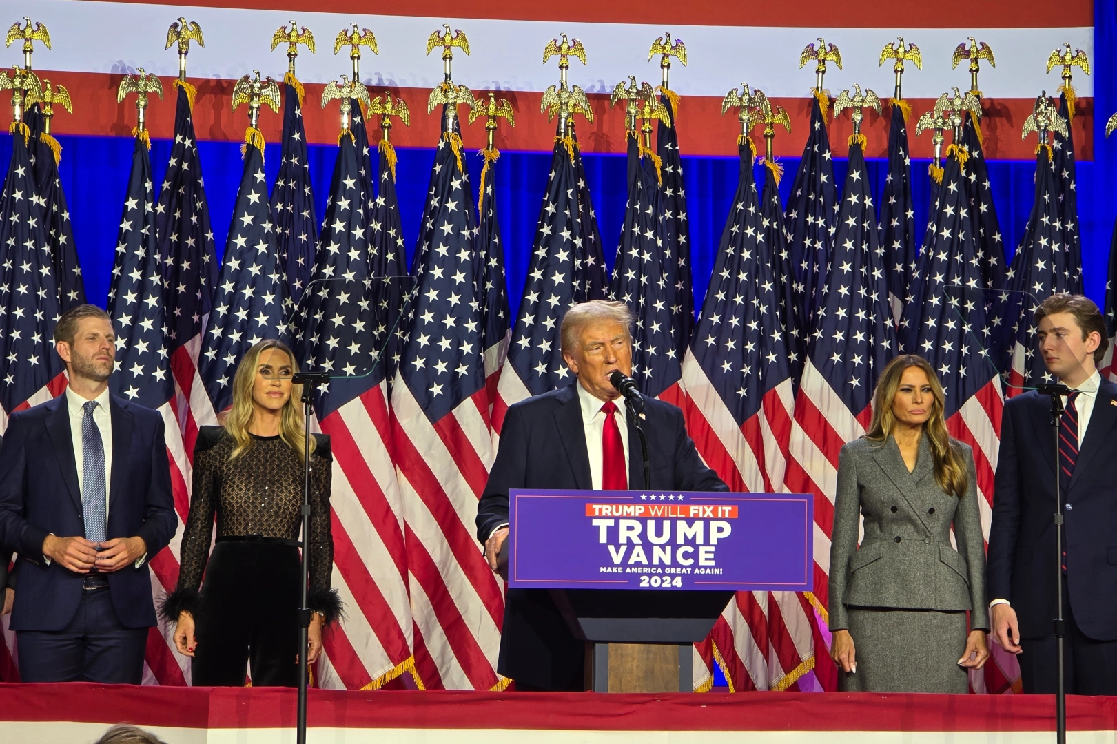 Elde ettikleri zaferin büyüklüğüne vurgu yapan Trump, “ABD daha önce böyle bir siyasi zafer görmedi. 47. ve aynı zamanda 45. başkanınızı seçtiğiniz için teşekkür ediyorum. Her gün sizin için aileniz için mücadele edeceğim. Çocuklarımızın ve sizlerin hak ettiği güçlü, güvenli ve müreffeh bir Amerika'yı inşa edene kadar durmayacağız. ABD'nin altın çağı olacak" dedi.