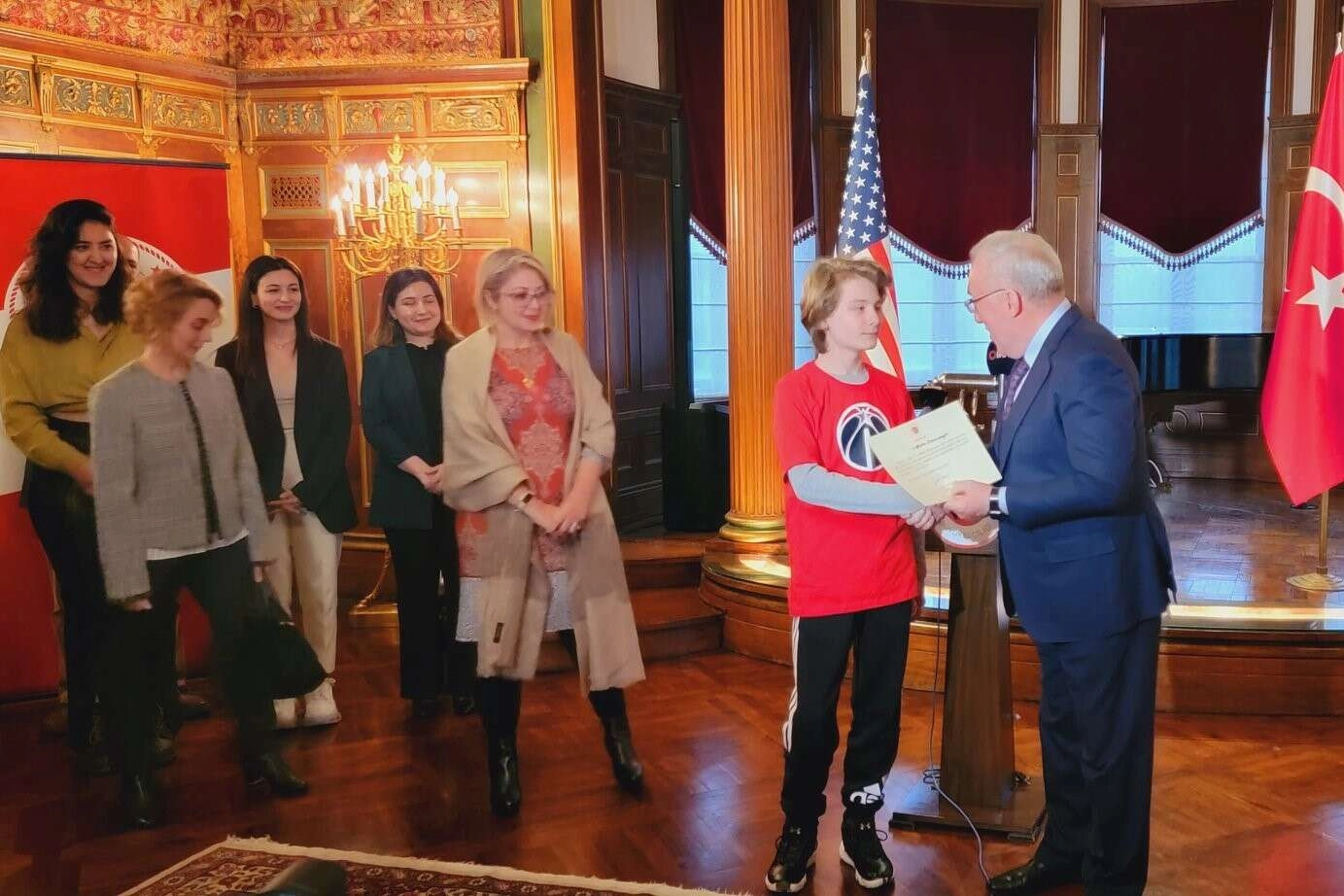 Türkiye'nin Washington Büyükelçisi Hasan Murat Mercan, Türkiye’deki depremzedeler için düzenlenen yardım kampanyasında çalışan gönüllülere teşekkür belgesi verdi.