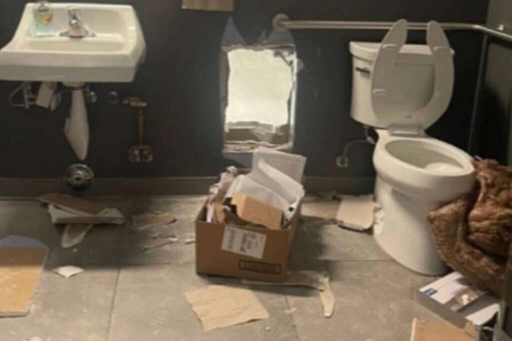 ABD'nin Washington eyaletinin Lynnwood şehrinde bir alışveriş merkezinde hırsızlar, Apple mağazasının bitişiğindeki kahve dükkanındaki tuvaletin duvarını deldi.