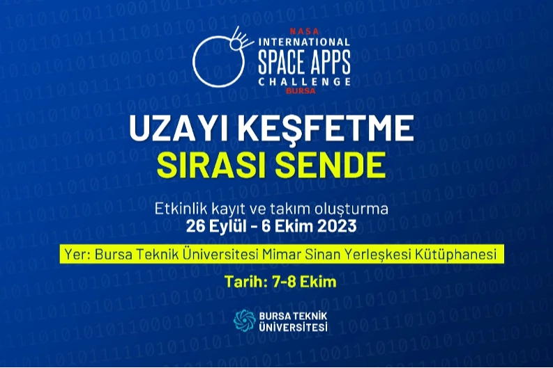 Bursa Teknik Üniversitesi'nin (BTÜ) Stratejik Partneri olduğu, TUA (Türkiye Uzay Ajansı) ve diğer ülke ajanslarının küresel destekçisi olduğu NASA (Ulusal Havacılık ve Uzay Dairesi) tarafından düzenlenen NASA Space Apps Challenge International’ın Bursa Etkinliği 7-8 Ekim tarihlerinde, Bursa Teknik Üniversitesi’nde gerçekleştirilecek. Dünya'da ve uzayda karşılaşılan zorluklara yenilikçi çözümler oluşturmak için NASA verileriyle çalışmak üzere her yıl dünyanın dört bir yanından binlerce birey ve ekibi bir araya getiren etkinlik, dünyanın en büyük yıllık küresel hackathon'u olma özelliği taşıyor. Space Apss, altı kıtadaki şehirlerdeki yerel inovasyon topluluklarına toplanmaları, fikir üretmeleri ve inşa etmeleri için ilham verecek. Teknoloji uzmanları, bilim insanları, tasarımcılar, girişimciler ve meraklısından oluşan çeşitli ve işbirlikçi ekipler, uzayda ve Dünya gezegeninin karşı karşıya olduğu en önemli zorluklardan bazılarına yanıtlar geliştirmek için 48 saatlik bir koşuda birlikte çalışacak.