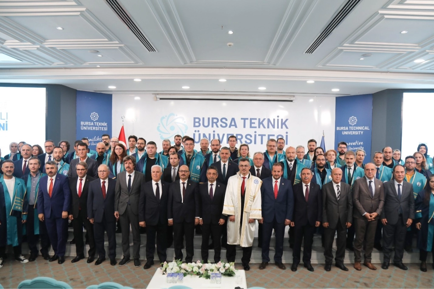 Bursa Teknik Üniversitesi 2024-2025 Akademik Yılı, Mimar Sinan Yerleşkesi Turkuaz Salon’da düzenlenen törenle başladı. Törene; AK Parti Bursa Milletvekilleri Refik Özen ve Osman Mesten, Bursa Büyükşehir Belediye Başkanı Mustafa Bozbey, Savunma Sanayii Başkanlığı Başkan Yardımcısı Prof. Dr. Hakan Karataş, Bursa Cumhuriyet Başsavcısı Ramazan Solmaz, Bursa Adli Yargı Mahkemesi Adalet Komisyonu Başkanı Ömer Gülmüş, Bursa Bölge Adliye Mahkemesi Başkanı Abdulkadir Şahin, Bursa Bölge Adliye Mahkemesi Cumhuriyet Başsavcısı, Sadık Bölek, Bursa Uludağ Üniversitesi Rektörü Prof. Dr. Ferudun Yılmaz, Mudanya Üniversitesi Rektörü Prof. Dr. Emin Karip, Bursa Vali Yardımcısı Salih Altun, Yıldırım Kaymakamı Metin Esen, Gürsu Kaymakamı Naif Yavuz, Yıldırım Belediye Başkanı Oktay Yılmaz, akademisyenler ve öğrenciler katıldı.
