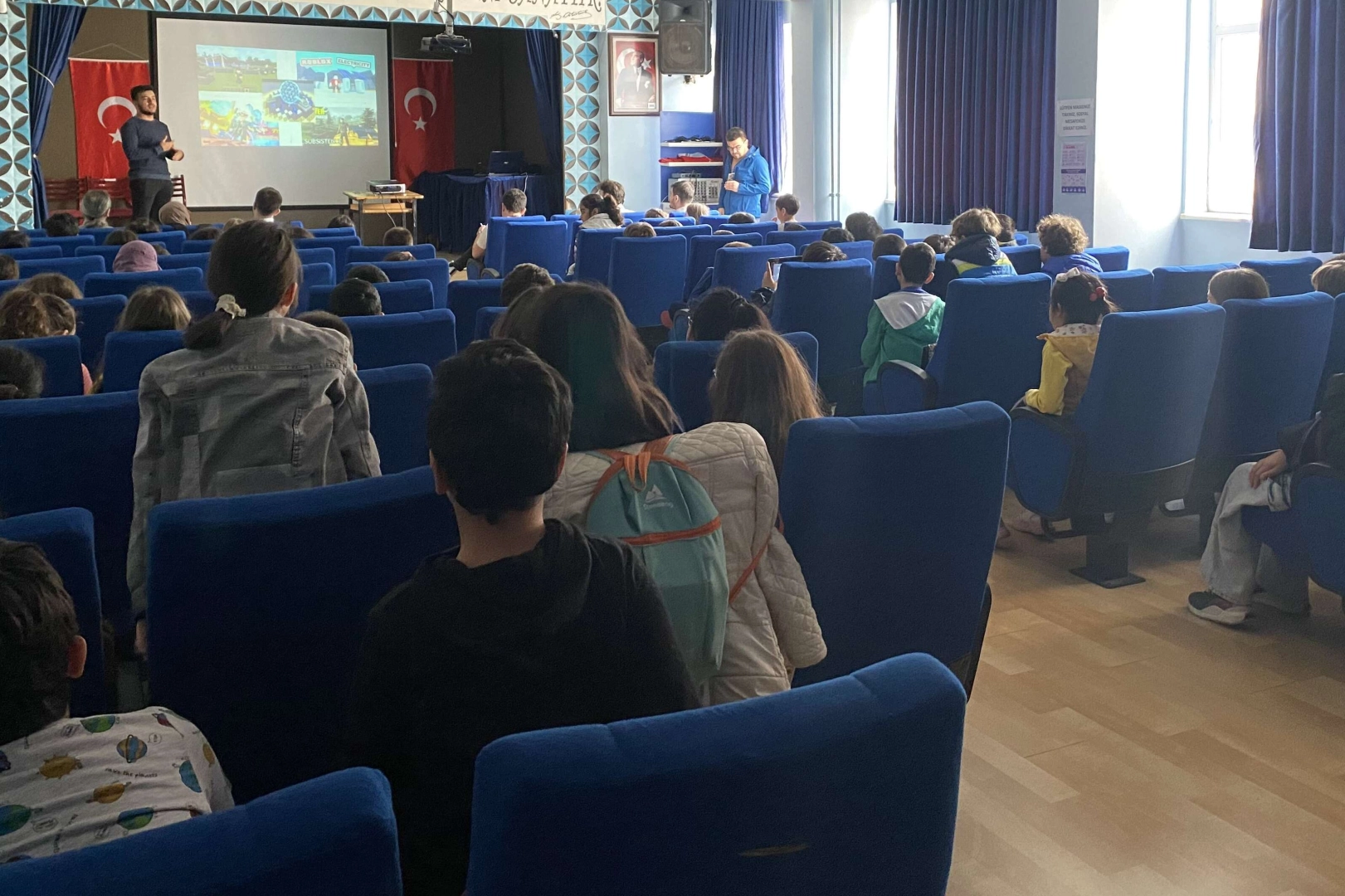 BTÜ Mühendislik ve Doğa Bilimleri Fakültesi (MDBF) Fizik Bölümü öğretim elemanı Dr. Öğr. Üyesi Zekeriya Doğruyol rehberliğinde, enerjide sürdürülebilirliğin temiz enerji kaynaklarından elde edilmesinin gerekliliğini vurgulayan seminerin ana teması “yenilenebilir enerjinin önemini karbon ayak izi üzerinden tanımlamak ve yenilenebilir enerji çeşitlerini tanıtmak” oldu. “Küresel iklim sorunu ve çözüm önerileri”, “Güneş ve rüzgar enerjisi” ve “Nükleer enerjinin” anlatıldığı etkinlikte; iklim krizi, karbon emisyonları, fosil yakıtlar, sürdürülebilirliğin toplumsal, çevresel ve ekonomik boyutları başlıklar halinde çocuklara aktarıldı.