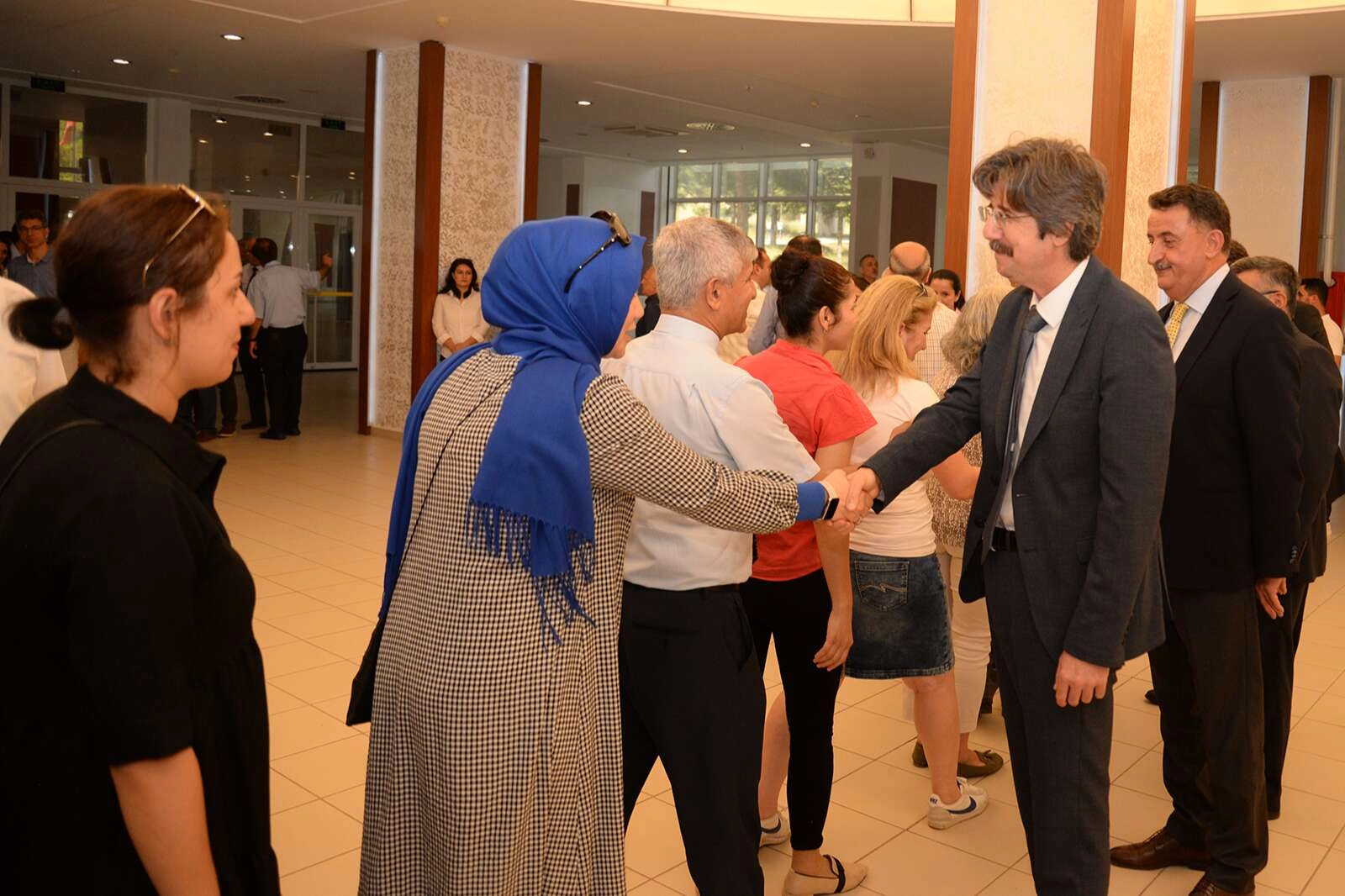 Prof. Dr. Mete Cengiz Kültür Merkezi’nde gerçekleştirilen bayramlaşma törenine Rektör Prof. Dr. Ferudun Yılmaz, Rektör Yardımcıları Prof. Dr. İrfan Kırıştıoğlu ve Prof. Dr. Adem Doğangün, Prof. Dr. Zekeriyya Arı, Üniversite Genel Sekreter Yardımcısı Fahrettin Çalışkan, akademisyenler ve idari personel katıldı.