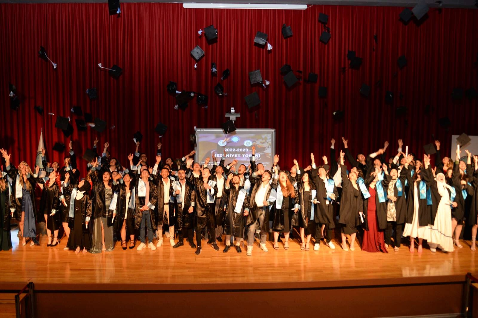 Tören, mezun olmaya hak kazanan tüm öğrencilerin anı belgelerini almaları ve hep birlikte kep atmaları ile sona erdi.