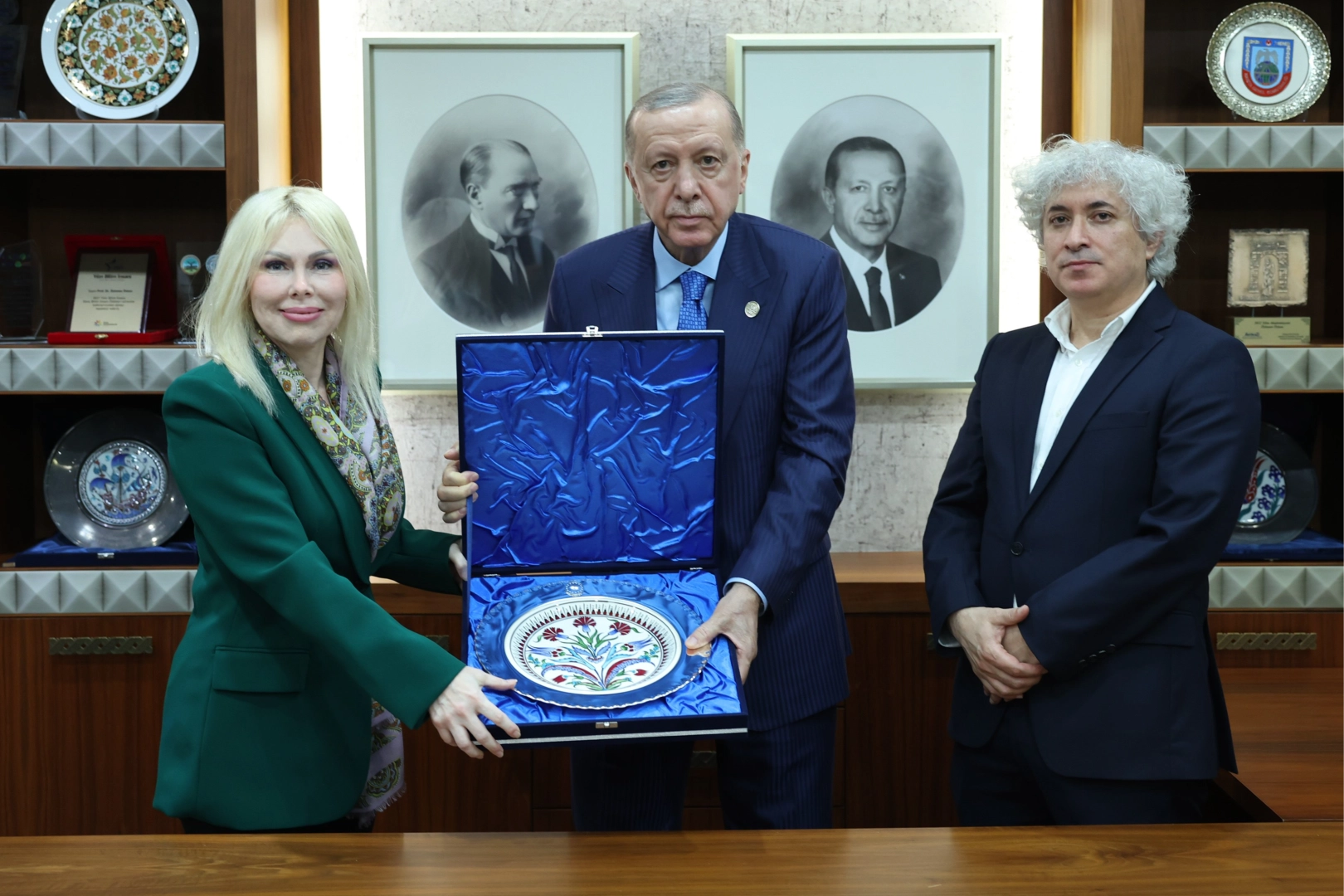 Cumhurbaşkanı Recep Tayyip Erdoğan, Akdeniz Üniversitesi Rektörü Prof. Dr. Özlenen Özkan'ı makamında ziyaret etti.
