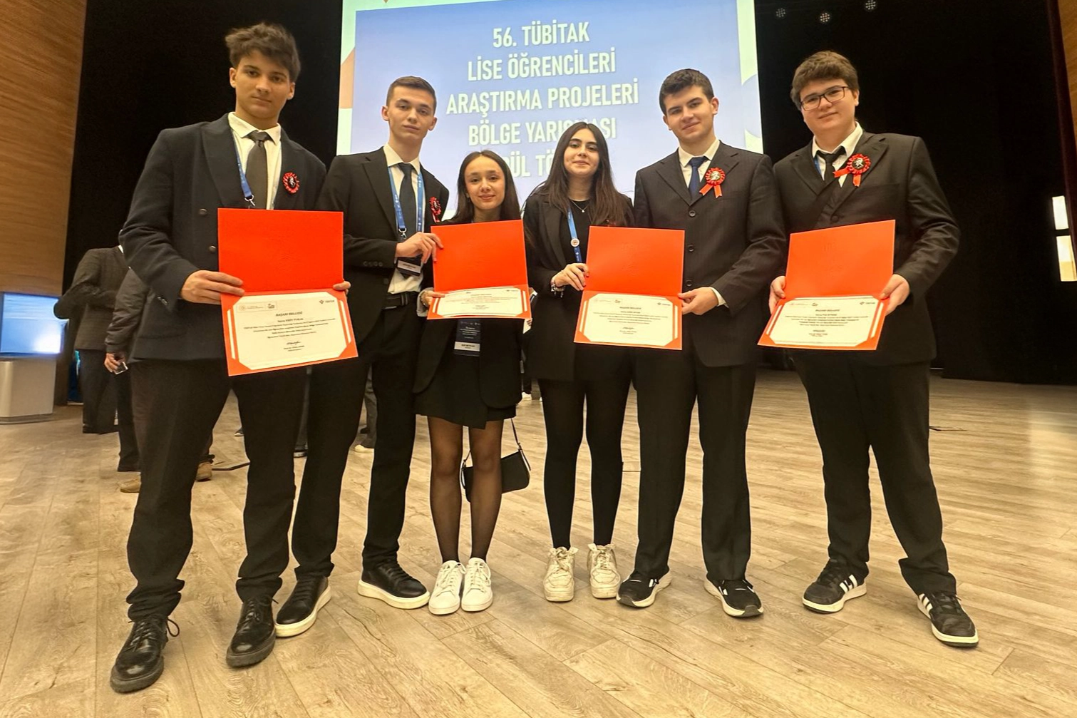 Fizik/Malzeme Bilimi ve Nanoteknoloji alanında; “Güneş ve termoelektrik enerji hasadı için verimli inorganik cssnx3(x= ı,br,cr) perovskit malzemelerinin karakterisazyonu ve optimizasyonu” projesi ile öğrenciler Yiğit Turan ve Eren Beykan ve Teknolojik Tasarım / Küresel Isınma ve İklim Değişikliği alanında “Otomobillerde karbon emisyonunu yerinde azaltma: mobil karbon yakalama cihazı tasarımı ve geliştirilmesi” projesi ile öğrenciler Emir Sever, Ege Kumru büyük başarı elde ederek ulusal finale yükseldi.