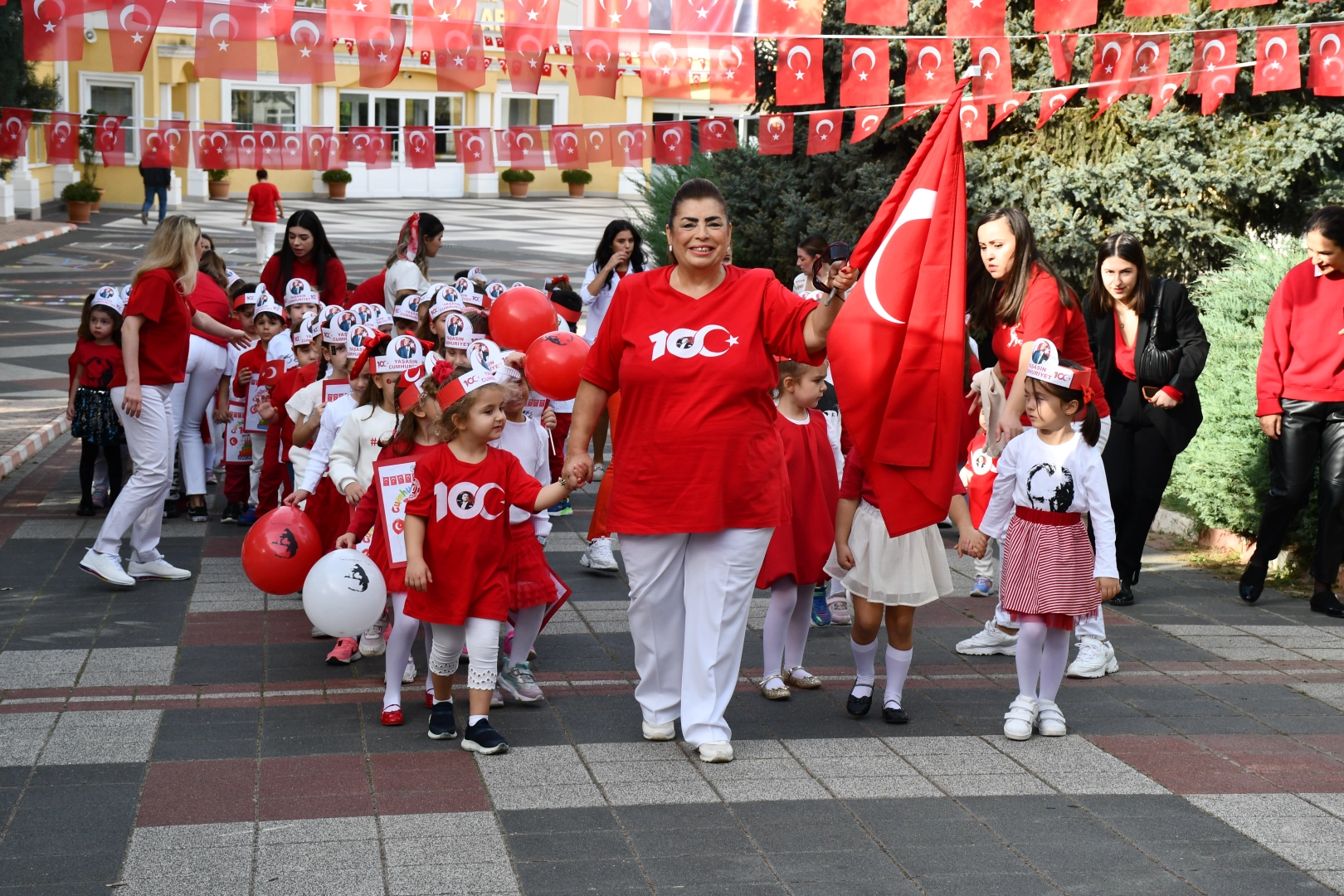 1.2.ve 3.sınıf öğrencilerinin toplu sölyediği “Cumhuriyet” şiiri 3.sınıfların Ege Bölgesi Zeybek gösterileri, Öğretmenlerin sunduğu Manastır türküsü, 4.sınıfların jimnastik gösterileri, 8.sınıfların 100 sayısını oluşturması ve öğrencilerin boyayarak hazırladığı “Cumhuriyetin Emanetçileriyiz” pankartı ve gösterilerinden sonra Cumhuriyet pastasının kesimi ile tören sona erdi. Bademli ve Ataevler Anaokulu öğrencilerinin bando eşliğinde yaptıkları Cumhuriyet yürüyüşü de herkeste büyük heyecan yarattı.