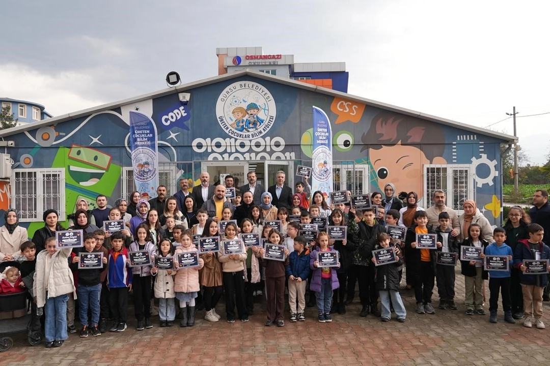 Gürsu Belediyesi Üreten Çocuklar Atölyesi, 2 aylık Üst Seviye Eğitim Programı ve Temel Eğitim Programı kapsamında yüzlerce öğrenciyi teknoloji ve ahşap üretimiyle buluşturarak önemli bir eğitsel süreci daha tamamladı. Öğrencilerin başarılarını taçlandırmak için bir sertifika programı düzenlendi.