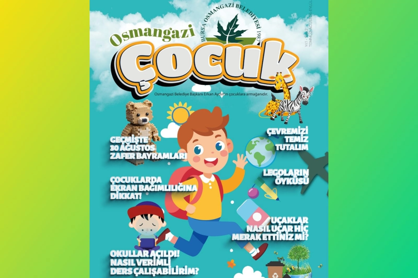 Osmangazi Belediyesi’nin çocukların hayal güçlerine katkı sunmak, bilgi kapasitelerini arttırmak, bilim ve teknolojiyi sevmelerini sağlamak ve genel kültürlerini geliştirmek amacıyla kültür dünyasına kazandırdığı ‘Osmangazi Çocuk’ isimli derginin ikinci sayısı, dopdolu içeriğiyle minik okurlarını bekliyor. Zengin içeriğiyle göz dolduran ‘Osmangazi Çocuk’ dergisinin ikinci sayısında, Atatürk’ün Gözünden Zafer Bayramı, Bursa’nın Kurtuluşu ve Siyah Sancak Hikayesi, Çocuklarda Ekran Bağımlılığına Dikkat, Verimli Ders Çalışmak İçin Neler Yapmalıyım?, Uçaklar Nasıl Uçar?, Çevremizi Temiz Tutalım, Bursa Hayvanat Bahçesi ve Legoların Hikayesi gibi başlıklar yer alıyor.