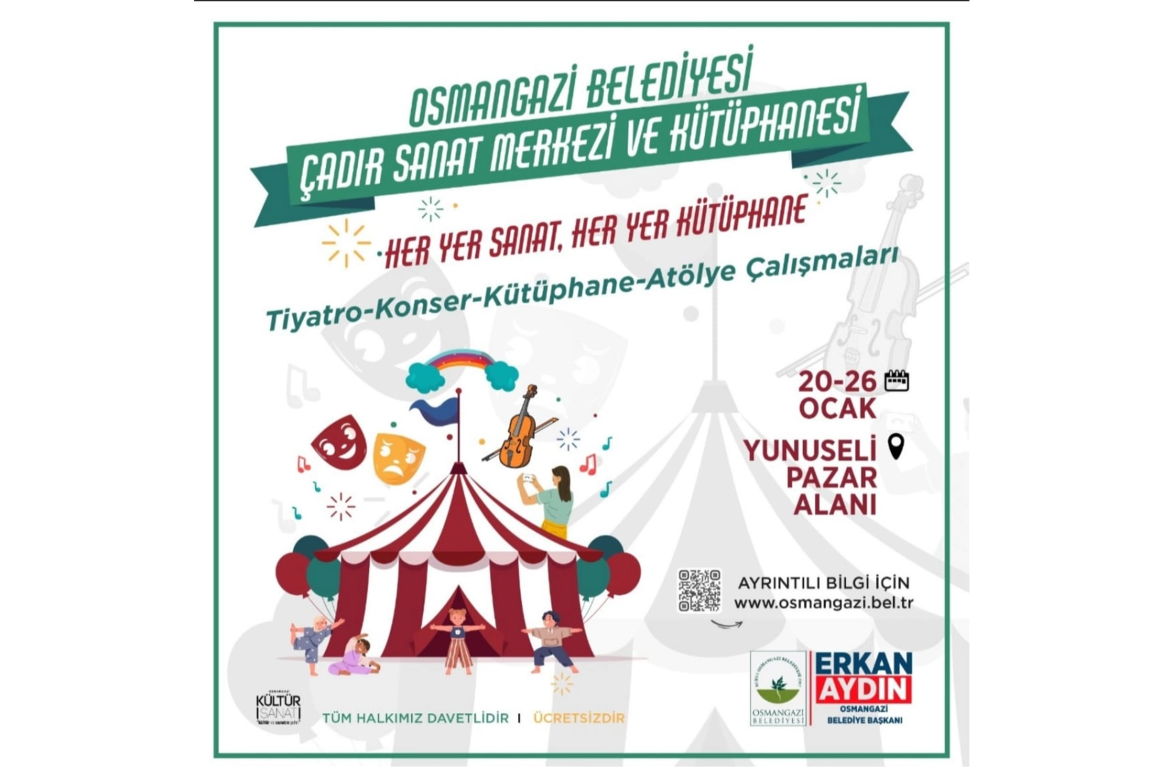 Osmangazi Belediyesi, 20-26 Ocak tarihleri arasında Yunuseli Pazar Alanı’nda ve 27 Ocak-02 Şubat tarihleri arasında Altınova Spor Tesisleri’nde kuracağı Çadır Sanat Merkezi ve Kütüphanesi ile çocuklara eğlenceli vakit geçirebilecekleri dopdolu bir ‘Yarıyıl Şenliği’ sunacak. 2024-2025 eğitim öğretim yılının ilk yarısının tamamlanmasıyla birlikte karnelerini alan Osmangazili öğrenciler, soluğu Osmangazi Belediyesi’nin kendileri için hazırladığı Çadır Sanat Merkezi ve Kütüphanesi’nde alacak. Tiyatro oyunları, masal anlatımı, atölye çalışmaları ve konserler gibi her gün ayrı bir programın yer aldığı Çadır Sanat Merkezi ve Kütüphanesi’ne giden Osmangazili çocuklar, hem eğlenecek hem de kültür sanat dolu bir hafta geçirecek.