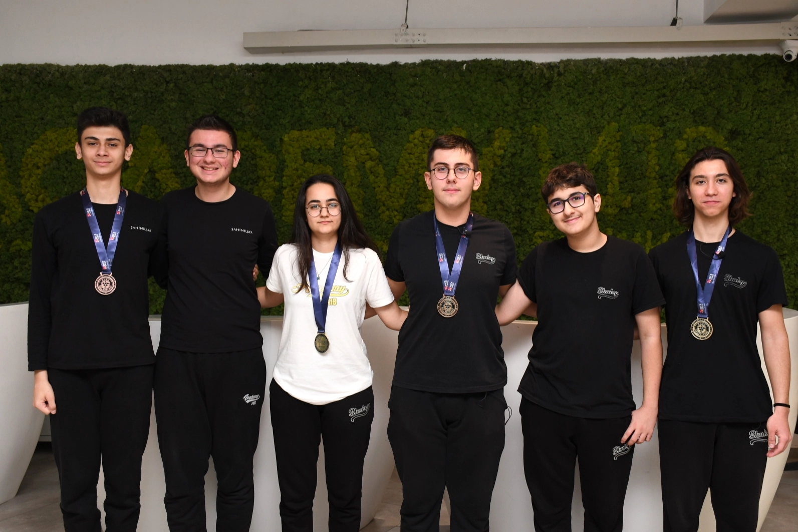 Olimpiyatlar kapsamında “Tekerlekten Elektriğe” isimli projesi ile Fizik kategorisinde dünya birincisi olan Aknil ÖZDEMİR ve “Güvenli Yürüyüş” isimli projeleri ile Enerji ve Mühendislik kategorisinde dünya birincisi olan Efe CEYLAN, Toprak Efe PEHLİVAN ve Berk KÖPRÜCÜOĞLU altın madalyanın sahibi olurken, “Yüzeydeki Partiküllerin Dinamik Kontakt Açılarıyla Değerlendirilmesi ve Maskelerin Optimizasyonu” isimli projeleri ile Burak Baki BERKER ve Efe ÜNAL ise dünya üçüncüsü olarak Şahinkaya bayrağını bir kez daha zirvede dalgalandırdılar.