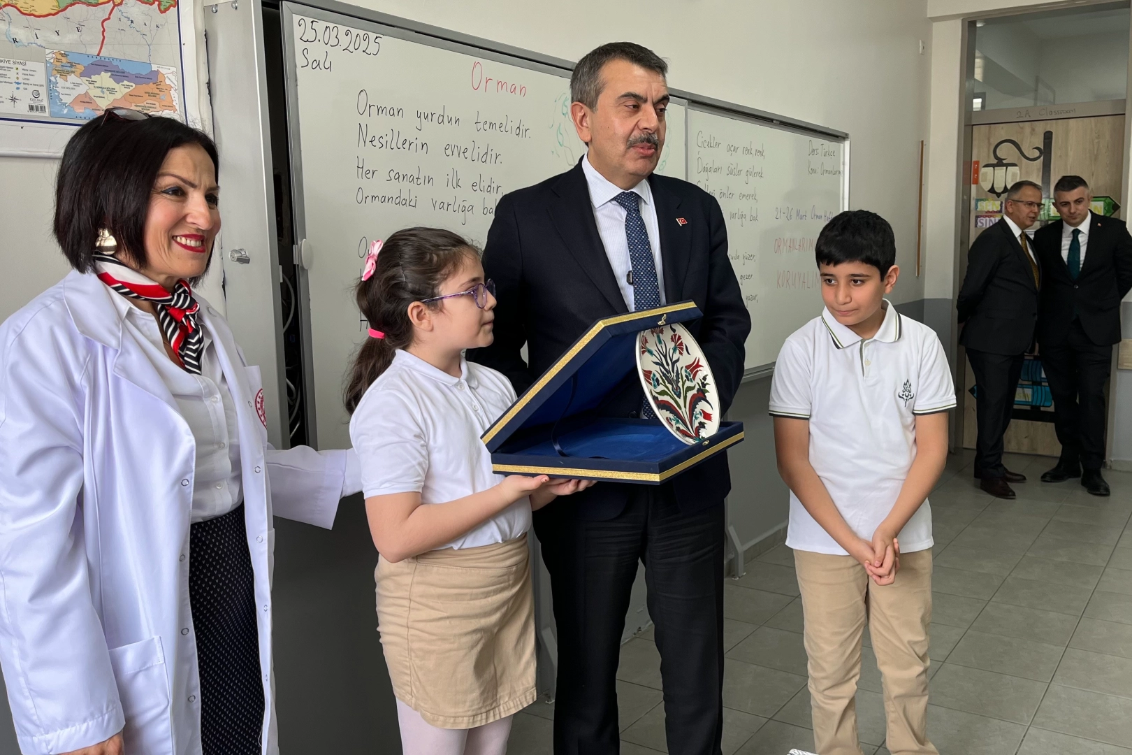 Bursa'nın Osmangazi İlçesi Hamitler Mahallesi'nde Şehit Göksu Şafak Şahin İlkokulu 4/B sınıfı öğrencisi Beril Küçükkaya, sınıf başkanı seçilmek için verdiği sözü tutup Milli Eğitim Bakanı Yusuf Tekin'i okuluna getirdi. Milli Eğitim Bakanı Yusuf Tekin'i karşılarında gören öğrenciler, mutluluklarını gizleyemedi.