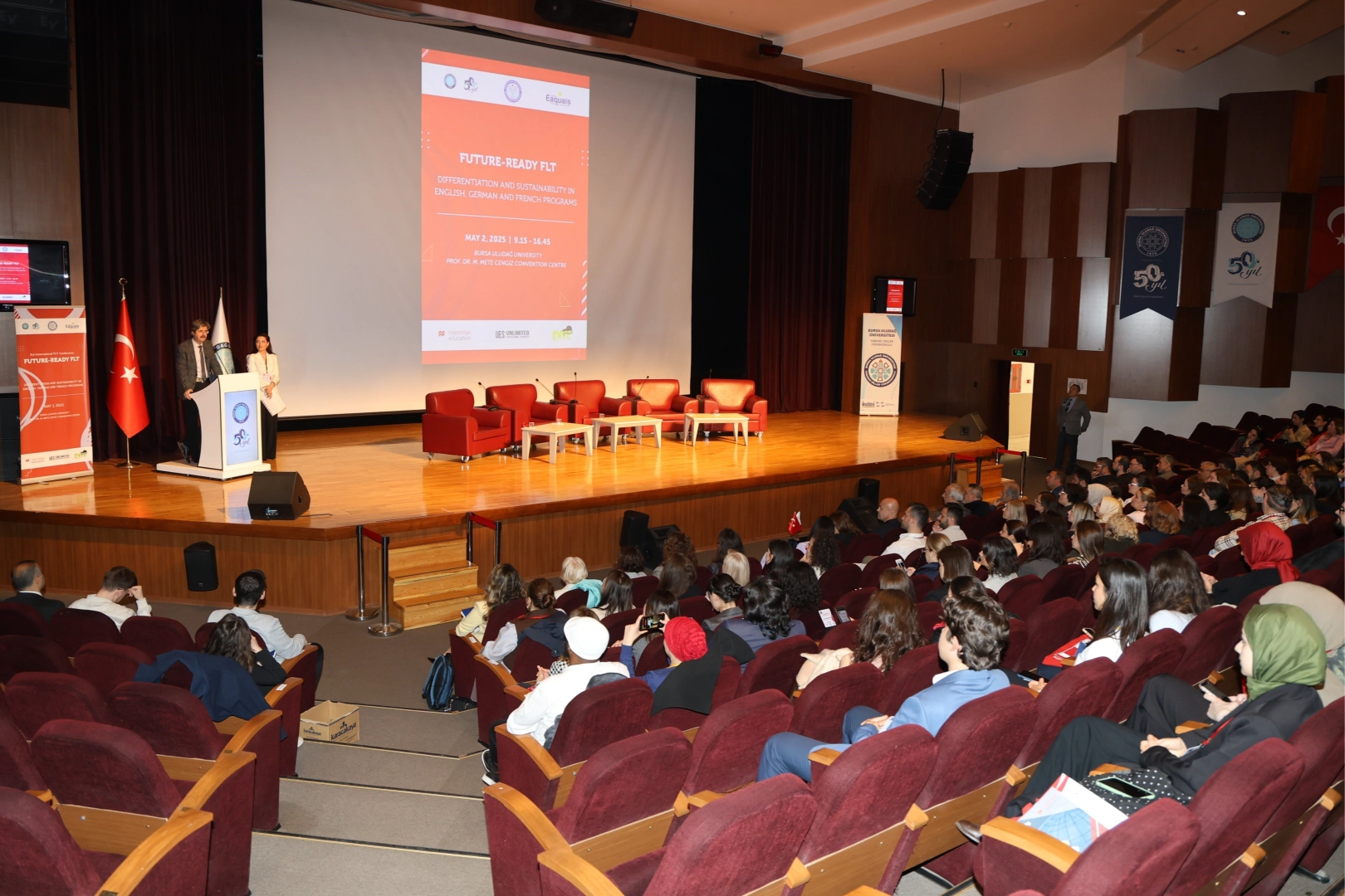 Mete Cengiz Kültür Merkezinde gerçekleşen "Differentiation and Sustainability in English, German and French" isimli programın açılış törenine BUÜ Rektörü Prof. Dr. Ferudun Yılmaz, Yabancı Diller MYO Müdürü Prof. Dr. İsmail Güler, MYO yöneticileri, McMillian Education Batı Avrupa Satış ve Pazarlama Direktörü Erdem Hacıfazlıoğlu ile çok sayıda akademisyen ve öğrenci katıldı. Açılışta konuşan BUÜ Rektörü Prof. Dr. Ferudun Yılmaz, "Bursa Uludağ Üniversitesi olarak 23 araştırma üniversitesinden birisiyiz ve bunun önemli boyutlarından birisi uluslararasılaşmadır. Ayrıca mevcut programlarımız içerisinde yüzde yüz İngilizce olan iki tane lisans programımız var. Bu sene YÖK'e gönderdik ve üçüncüsünü de teklif ettik.