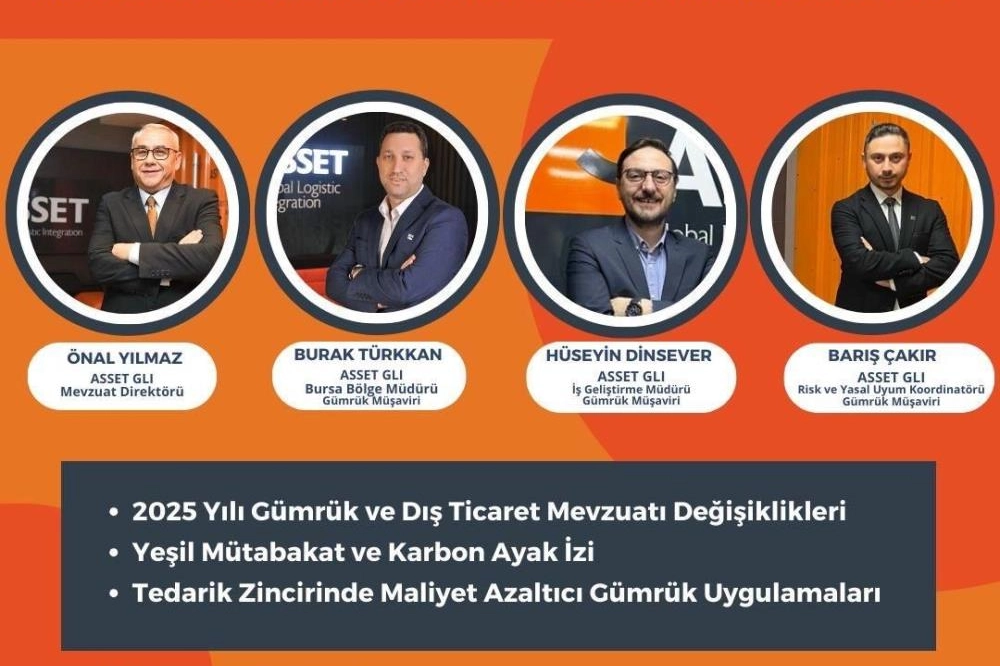 Asset Global Logistic Integration (GLI) ve NOSAB iş birliğiyle düzenlenen etkinlik, 15 Ocak Çarşamba günü, 13.30-16.30 saatleri arasında, NOSAB Yalçın Aras Konferans Salonu'nda gerçekleştirilecek. Konferansta, mevzuat değişikliklerinin yanı sıra yeşil mutabakat ve karbon ayak izi ile tedarik zincirinde maliyet azaltıcı gümrük uygulamaları masaya yatırılacak. Etkinlikte Asset GLI Mevzuat Direktörü Önal Yılmaz, Bursa Bölge Müdürü Burak Türkkan, İş Geliştirme Müdürü Hüseyin Dinsever ile Risk ve Yasal Uyum Koordinatörü Barış Çakır konuşmacı olarak yer alacak. Katılımcılar, güncel mevzuat değişiklikleri hakkında bilgi edinme fırsatı bulurken, dış ticaret ve lojistik süreçlerinde yeni stratejiler geliştirme imkanı yakalayacak.