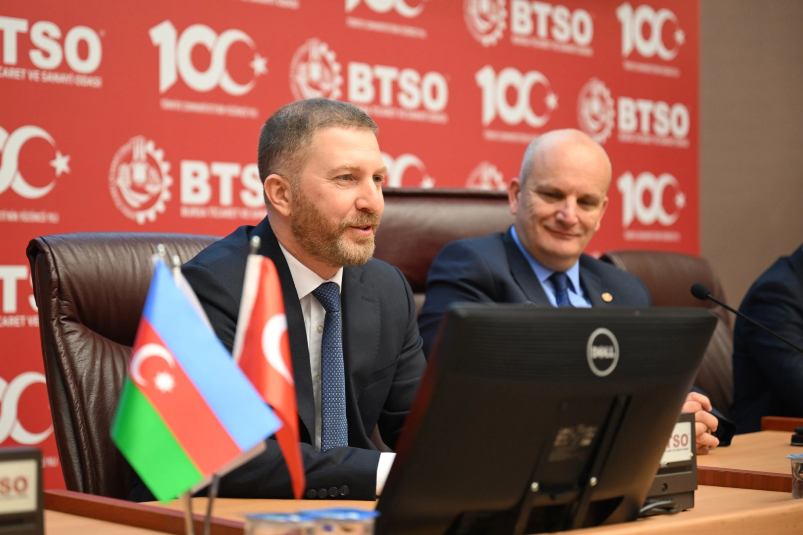 Bursa’nın gerek tarihi gerekse de sanayisi ile Türkiye’nin önemli şehirlerinden biri olduğunu belirten Ticaret Temsilcisi Tamerlan Taghiyev, BTSO’ya ev sahipliği için teşekkür etti. Konuşmasında Ticaret Temsilcisi Ofisi’nin kuruluş amacı ve sorumluluk alanlarına ilişkin bilgiler veren Taghiyev, “Ticaret temsilcisi ofislerimiz 6 ülkede faaliyet gösteriyor. Son olarak bir yıl önce Türkiye’de kuruldu. Ticaret temsilcilerimiz, Cumhurbaşkanımızın onayı ile Ekonomi Bakanımız tarafından atanıyor. Bulunduğu ülkede büyükelçilik veya başkonsolosluk desteği ile faaliyet gösteriyor. Türk iş dünyasını Azerbaycan'ın büyüyen ekonomisindeki fırsatlarla tanıştırmak için buradayız. Azerbaycan’da üretilen mal ve hizmetlerin Türkiye’de tanıtılması, iki ülke arasındaki teknoloji transferinin sağlanması, üçüncü ülkelerde işbirliği fırsatlarının oluşturulması da başlıca hedeflerimiz arasında yer alıyor.” diye konuştu.