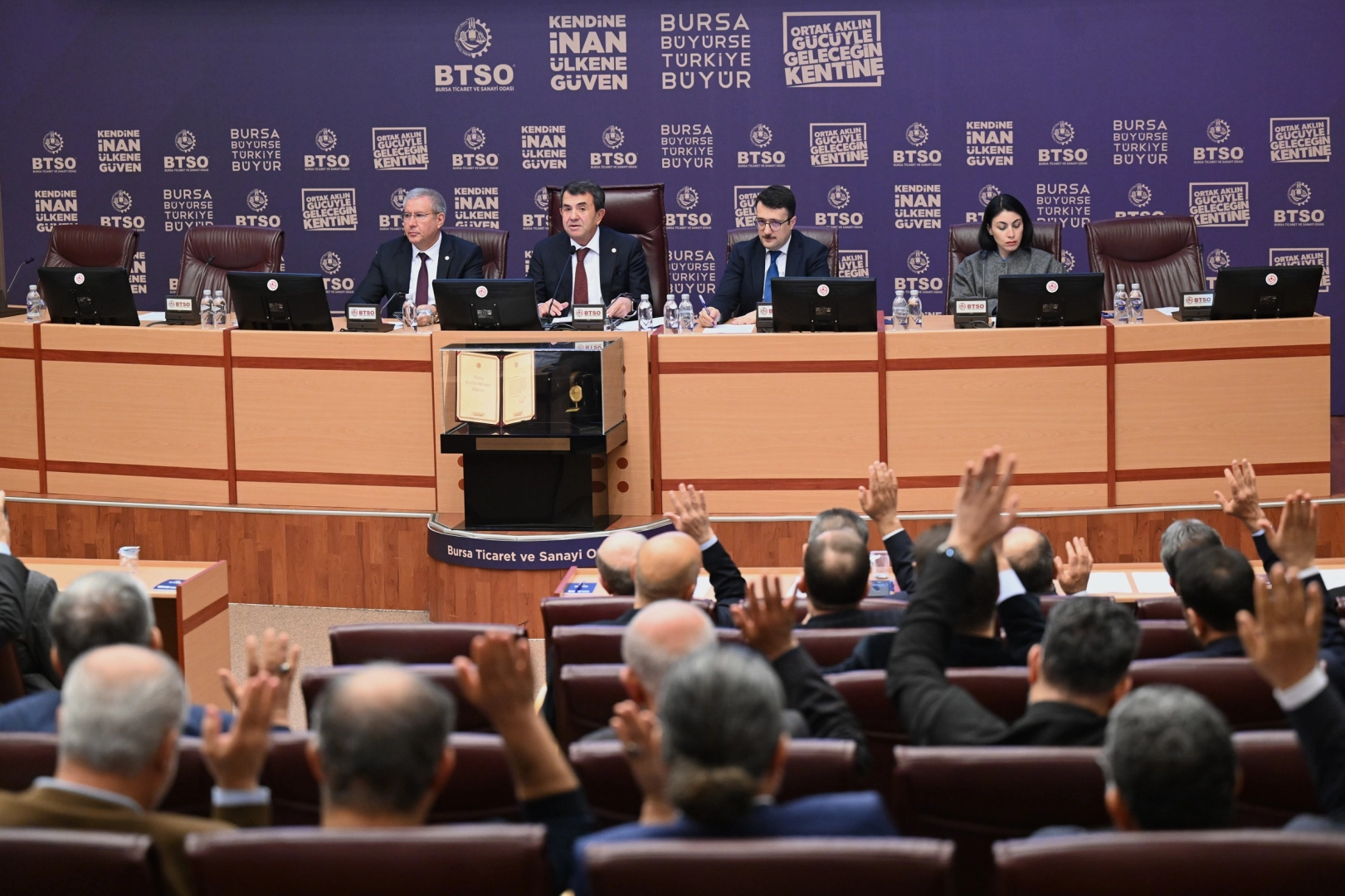 Bursa Ticaret ve Sanayi Odası (BTSO) Mart Ayı Meclis ve Müşterek Komiteler Toplantısı'nda konuşan Yönetim Kurulu Başkan Yardımcısı İsmail Kuş, 60 bini aşkın üyeleriyle Türkiye'nin en büyük odalarından biri olduklarını vurguladı. TEKNOSAB'dan GUHEM'e kadar tüm dev projelerin ortak aklın ürünü olduğunu belirten Kuş, 'Bursa iş dünyası tek ses, tek yürek olmayı başarmıştır' dedi.