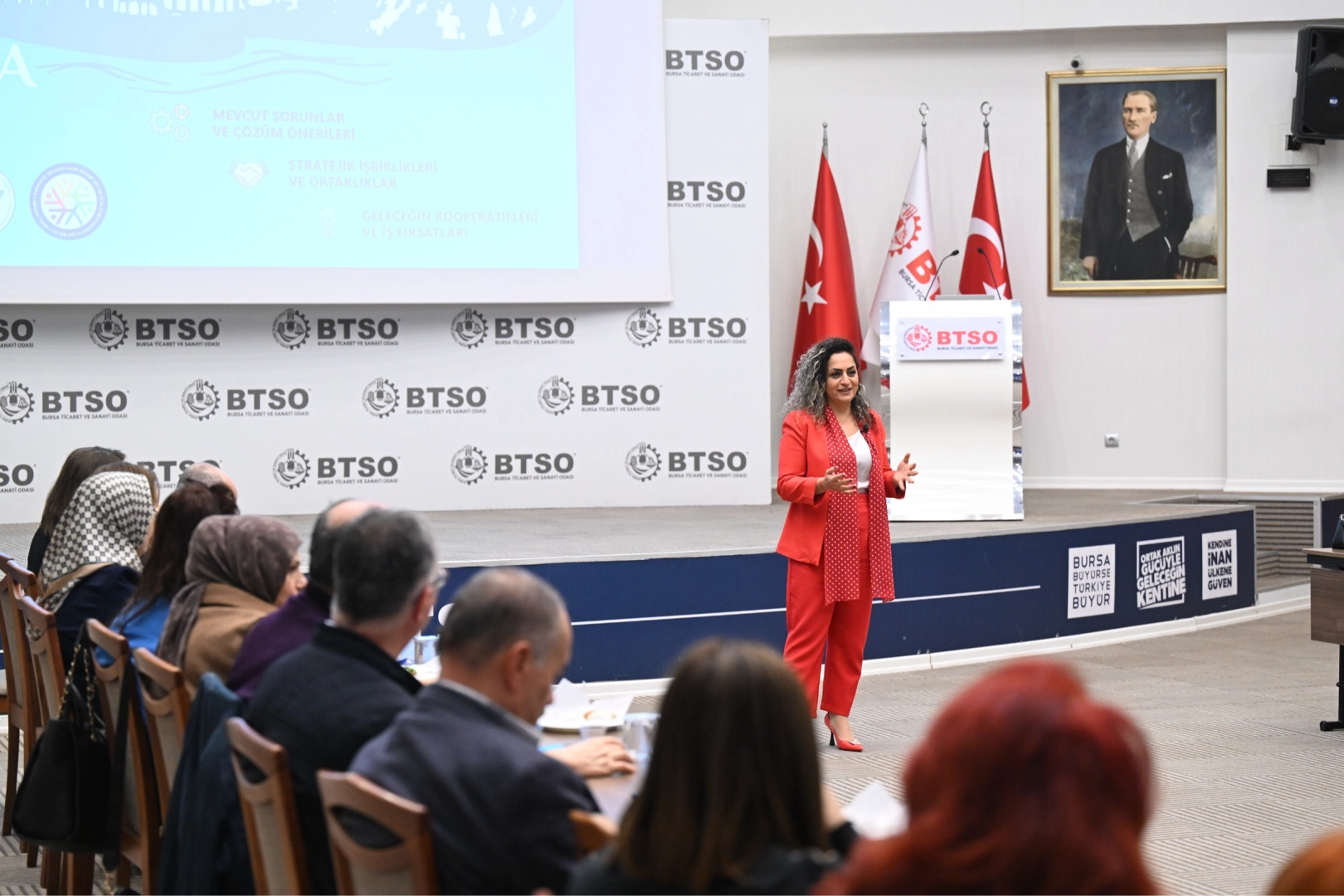 BTSO ve Türkiye Kooperatifçilik Vakfı iş birliğiyle düzenlenen buluşmada, kooperatiflerin ekonomik kalkınmadaki rolü ve dijital dönüşümün önemi masaya yatırıldı.