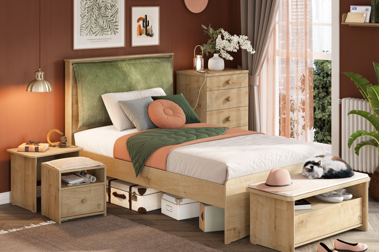 Mocha Koleksiyonunun modüler yapısı, büyüme sürecinde değişen beklentilere uyum sağlayarak odaları dönüştürüyor. Oyun alanı olarak başlayan bir oda, zamanla çalışma, dinlenme ve kişisel yaşam alanına kolayca evrilebiliyor. Bu esnek yapı, hem çocukluktan gençliğe uzanan geçişi destekliyor hem de uzun yıllar kullanılabilecek bir fonksiyonellik sunuyor.