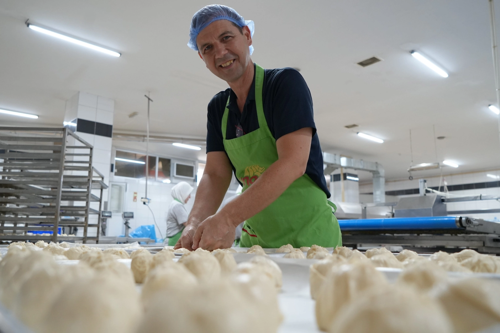 ÜRÜNLERDEKİ ASIL LEZZETİN KAYNAĞI: EL LEZZETİ Ürünlerin yüzde 80'inin el değmeden üretilmesine rağmen ürünlere yapılan son dokunuşun el ile temas ettiğini ve bunun ürünlere lezzet verdiğini vurgulayan Korucuoğlu, “Bizim ürünlerimizin lezzet kaynağı ilk olarak sevgiyle yapıyor oluşumuz. Ben unlu mamul içerisinde doğdum ve 50 yaşındayım. 3 kardeşimle beraber bu işin içerisindeyim, biz 3. kuşağız 4. kuşağı da yavaş yavaş hazırlıyoruz. Kızım da işletmemize dâhil oldu. Seneye oğlum da gelecek biz bu işi kuşaklar boyu sürdüreceğiz. Biz ürünlerimizi yüzde 80'ini el değmeden üretiyoruz. Ama insanın elinin bir lezzeti vardır. Bu lezzeti yakalamak için ürünlere el değmesi gerekiyor. Simidin en son dokunuşunda bağlanması el ile yapılır, boyozun hamuru hazır gelir el ile bastırırsın, börek çeşitlerimiz hazırlanır onlar el ile tepsiye dizilir. En son dondurulmuş şekilde işletmelere gittiğinde onlar elleriyle yumurtalar, simide yuvarlak form verirler. Mutlaka el değer, el değmezse zaten biz o lezzeti alamayız” dedi Bursa'dan 3 kıtada 20'ye yakın ülkeye aktif ihracat yaptıklarını belirten Koruncuoğlu, “Yıllık yaklaşık 600-650 ton unlu mamul gönderiyoruz. Biz en başta börekçiyiz, börke çeşitlerimizde çatal börek, gül börek, kalem börek, kol börek ve saray börek gibi börek çeşitlerimiz var. Aynı zamanda Bursa'nın simidini günlük 70 bin, aylık ise 2 milyon adet üretiyoruz. 2023'te yıllık 600-650 ton arası satış yapmıştık. Bu seneki hedefimiz bin ton, 2025'teki hedefimiz iste bin 500 ton ürünü yurt dışına ihraç etmektir.