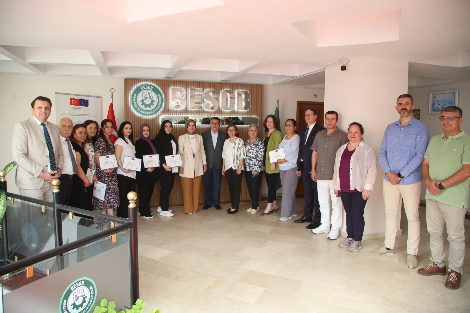 Yıldırım Belediye Başkan Yardımcısı Ayşe Ertan, İMEP 2 Program Koordinatörü Aişe Akpınar, Saha Koordinatörü Sezgin Akpınar, İMEP Bölge Koordinatörü Aydın Türkoğlu, Bursa Demir ve Madeni İşler Sanatkarları Esnaf Odası Başkanı İzzet Güven ve Gazaltı Kaynakçılığı "MİG- MAG" eğitimlerini başarıyla tamamlayan kadın kaynak ustaları BESOB’u ziyaret etti.