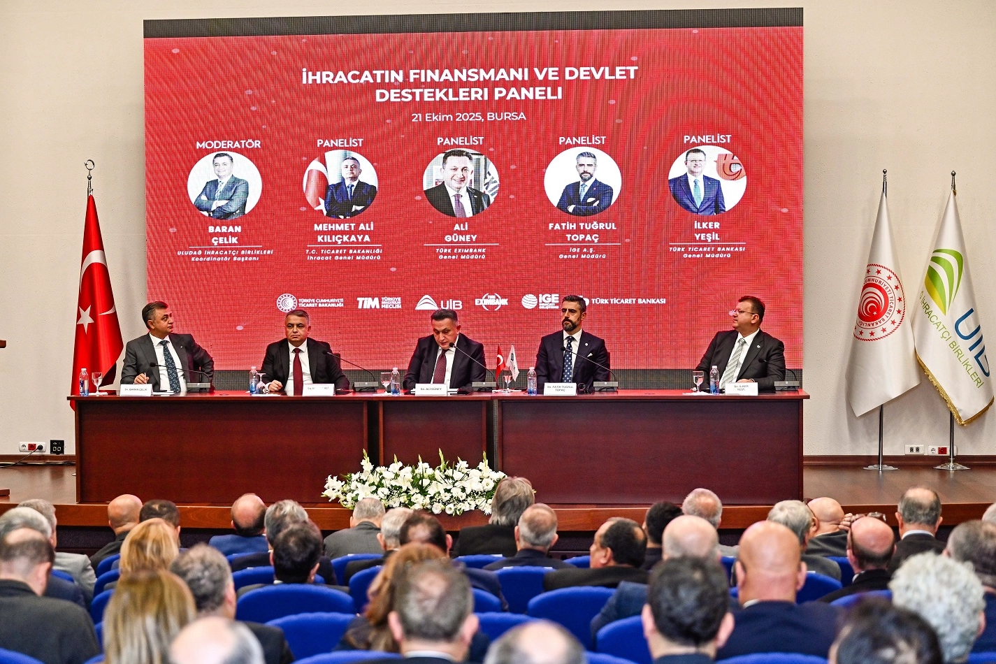 UİB Koordinatör Başkanı Baran Çelik moderatörlüğünde gerçekleştirilen “İhracatın Finansmanı ve Devlet Destekleri” paneli, Ticaret Bakanlığı İhracat Genel Müdürü Mehmet Ali Kılıçkaya, Türk Eximbank Genel Müdürü Ali Güney, İhracatı Geliştirme A.Ş. Genel Müdürü Fatih Tuğrul Topaç ve Türk Ticaret Bankası Genel Müdürü İlker Yeşil, sunumlarını gerçekleştirdi.