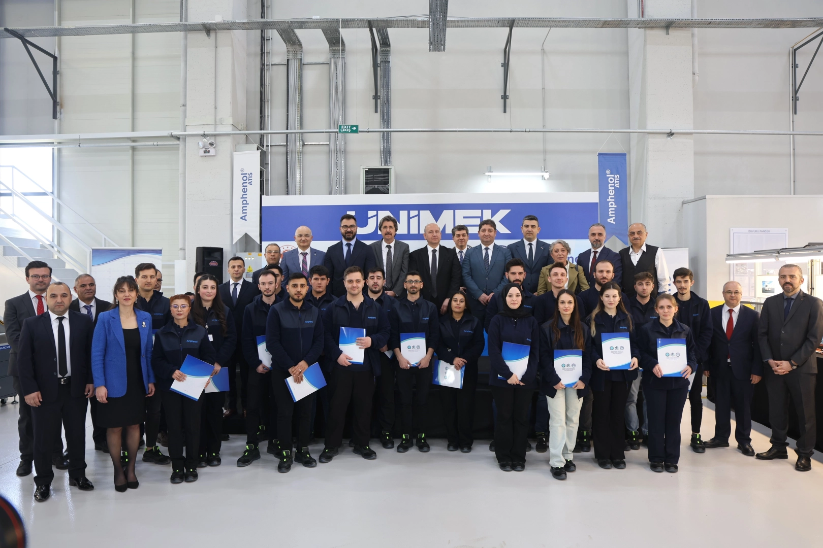 Çalışma ve Sosyal Güvenlik Bakanlığının önderliğinde; Türkiye İş Kurumu (İŞKUR), Bursa Uludağ Üniversitesi (BUÜ) ve Amphenol Türkiye Interconnect Solutions ortaklığıyla gerçekleştirilen Nitelikli İş Gücü Yetiştirme Programı’nın (ÜNİMEK) ilk dönemi düzenlenen belge töreniyle kapatıldı.
