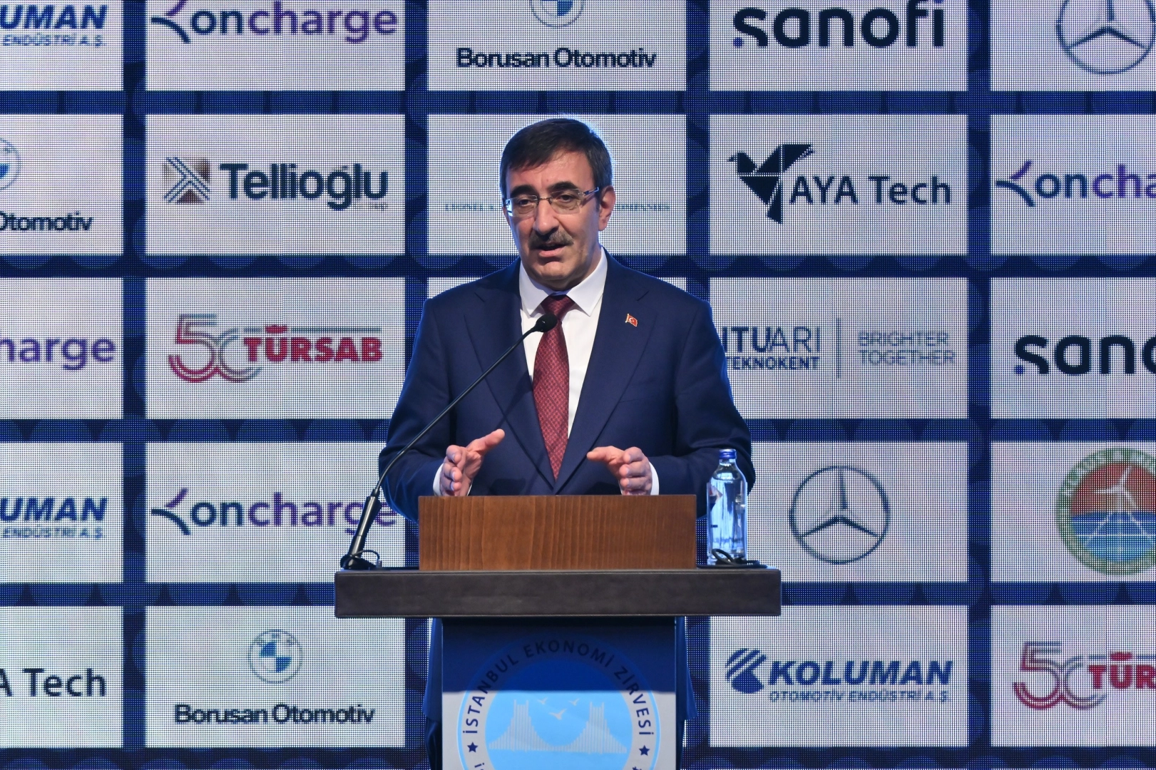 Cumhurbaşkanı Yardımcısı Cevdet Yılmaz, 7. İstanbul Ekonomi Zirvesi'ne katıldı. Toplantıda konuşan Yılmaz, Türkiye ekonomisinin yılsonu rakamları ve gelecek dönemdeki gidişatına ilişkin bilgiler verdi. Yılmaz, ekonomide belirsizliği azaltacak ve öngörülebilirliği artıracak çalışmalara hız verdiklerinin altını çizerek, "Yatırımı, istihdamı, üretimi ve ihracatı öncelikli hale getiren politikalarla, sürdürülebilir büyümeyi ve kalkınmayı öngörüyoruz. Hazırladığımız 5 yıllık kalkınma planımız ve OVP ile de politika belirsizliklerini ortadan kaldırdık" ifadelerini kullandı. "Türkiye ekonomisi 20 yıllık süreçte yıllık ortalama 1,8 puan dünya ekonomisinin üzerinde büyüme performansı sergiledi" Cumhurbaşkanı Yardımcısı Yılmaz, Merkez Bankası'nın güncellenmiş para politikasını hayata geçirdiğini söyleyerek, "Maliye politikalarını disiplinli bir şekilde depremin ortaya çıkardığı ekstra harcamalara rağmen disiplini elden bırakmamaya devam ediyoruz. Son 20 yılda Türkiye ekonomisi yıllık ortalama yüzde 5,4 büyüme kaydetti. Aynı dönemde dünyanın ortalama yıllık büyüme oranı 3,6 olarak gerçekleşti. Dolayısıyla Türkiye ekonomisi 20 yıllık süreçte yıllık ortalama 1,8 puan dünya ekonomisinin üzerinde büyüme performansı gerçekleştirdi" diye konuştu. "2023 yılında ekonomimizin 1,1 trilyona yakın büyüklüğe ulaşmasını bekliyoruz" Türkiye'nin nominal dolar bazında şu anda dünyanın 17. büyük ekonomisi olduğunu kaydeden Yılmaz, "2023 yılında ekonomimizin 1,1 trilyona yakın büyüklüğe ulaşmasını bekliyoruz. Şu anda 12 aylık geriye gittiğimizde zaten bunu yakalamış durumdayız. Bu yılın ilk 9 ayında 4,6 büyüme kaydettik. Dünyanın yine yüzde 3 ve hatta yüzde 3'ün altında büyümesi öngörülen bir dönemde, 4,6 bir büyüme sağlıyoruz. Depreme rağmen ve enflasyon tedbirlerine rağmen büyümemizi belli bir hızda devam ettiriyoruz. OVP'ye göre bu yılı yüzde 4,4 civarında bir büyüme ile kapatmayı ön görüyoruz" şeklinde konuştu. "2024'ün ortalarından itibaren enflasyonda belirgin bir şekilde düşüş gerçekleşecek" Enflasyonun aylık bazda oldukça önemli oranda düştüğünü hatırlatan Cumhurbaşkanı Yardımcısı Yılmaz, sözlerine şöyle devam etti: "Çekirdek enflasyon yüzde 2'nin altına inmiş durumda. 2024'ün ortalarından itibaren enflasyonda belirgin bir şekilde düşüş gerçekleşecek. İhracatımız çok iyi gidiyor. Dünya daraldığı halde ihracatımız gerçekten güçlü bir performans gösteriyor. En son Kasım ayında 23 milyar doları aştık. Türkiye'nin tarihindeki en yüksek Kasım ayı ihracatı oldu. Yıllık bazda ise OVP'ye göre 255 milyar doları aşmayı hedefliyoruz." "Rezervlerimiz 140 milyar doları aştı, bu da Türkiye için bir rekor" Merkez Bankası'nın yeni bir politika izlediğini belirten Yılmaz, "En yakından sonuçları gördüğümüz rakamlardan birisi de rezervlerimiz. Geçtiğimiz Mayıs ayında brüt rezervlerimiz 98,5 milyar dolara kadar düşmüştü. Dün itibariyle yapılan duyuruda, 140 milyar doları aşmış durumdayız. Bu da Türkiye için bir rekor. Bir taraftan bütçe açığını kontrol ederken diğer taraftan da cari açığını aşağı çekme gayretindeyiz. Son dönemde ciddi anlamda da cari açıkta bir düzelme var. Yılın ilk yarısında daha yüksekti. İkinci yarısındaki 4 aylık cari açığa bakarsanız, yılsonu itibariyle 4-5 milyar dolar seviyelerinde bir düzeye inmiş durumda. Yılsonu itibariyle cari açığımız yüzde 4'ler seviyesine düşmüş olacak" dedi. ''Doğu Akdeniz'de Kıbrıs Adası'nda Türk-Yunan dengesi fevkalade önemlidir'' Zirveye katılan KKTC Cumhurbaşkanı Ersin Tatar ise şöyle konuştu: "Doğu Akdeniz ve Kıbrıs'tan buralara baktığım zaman umutlanıyorum. Çünkü istikrarın devamı ile ve Cumhurbaşkanı Recep Tayyip Erdoğan'ın liderliğinde Türkiye'nin potansiyelinin yakalanması noktasındaki tedbirlerle, yeni yüzyılda her şey daha iyi olacaktır. Kıbrıs kuruluş anlaşmalarında da ifade edildiği gibi Doğu Akdeniz'de Kıbrıs Adası'nda Türk-Yunan dengesi fevkalade önemlidir. Bu bölgedeki istikrarın devamıyla, Doğu Akdeniz'deki zenginliklerin ekonomiye yansıması ve tabi ki Türkiye ile Yunanistan arasındaki ilişkilerin de elbette çok önemi vardır. Dolayısıyla dün Cumhurbaşkanı Recep Tayyip Erdoğan'ın Yunanistan ziyaretini yakından izledik."