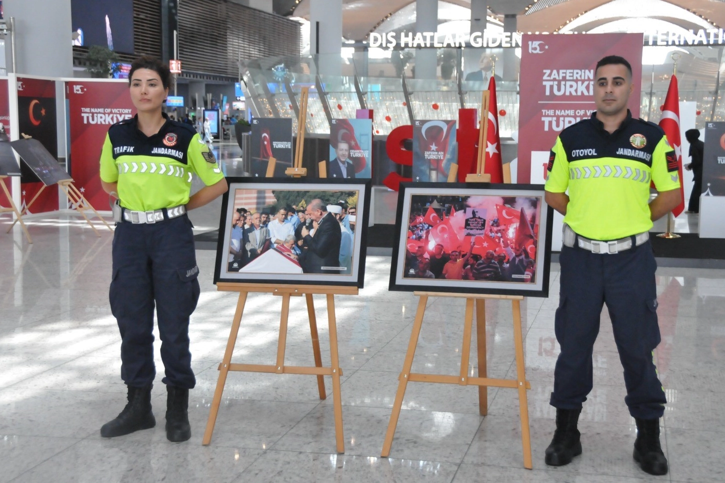 İstanbul Havalimanı'nda açılan Zaferin adı Türkiye adlı sergiye yerli ve yabancı yolcular ilgi gösterdi. 15 Temmuz Demokrasi ve Milli Birlik Günü anma etkinlikleri kapsamında İstanbul İl Jandarma Komutanlığı'nca İstanbul Havalimanı’nda sergi açıldı. Sergide 15 Temmuz darbe girişimi sırasında yaşananları anlatan fotoğraflar yer aldı. Askeri personel sergiyi gezen yolculara o güne dair bilgilendirmelerde bulundu. Sergiye yolcular büyük ilgi gösterdi.