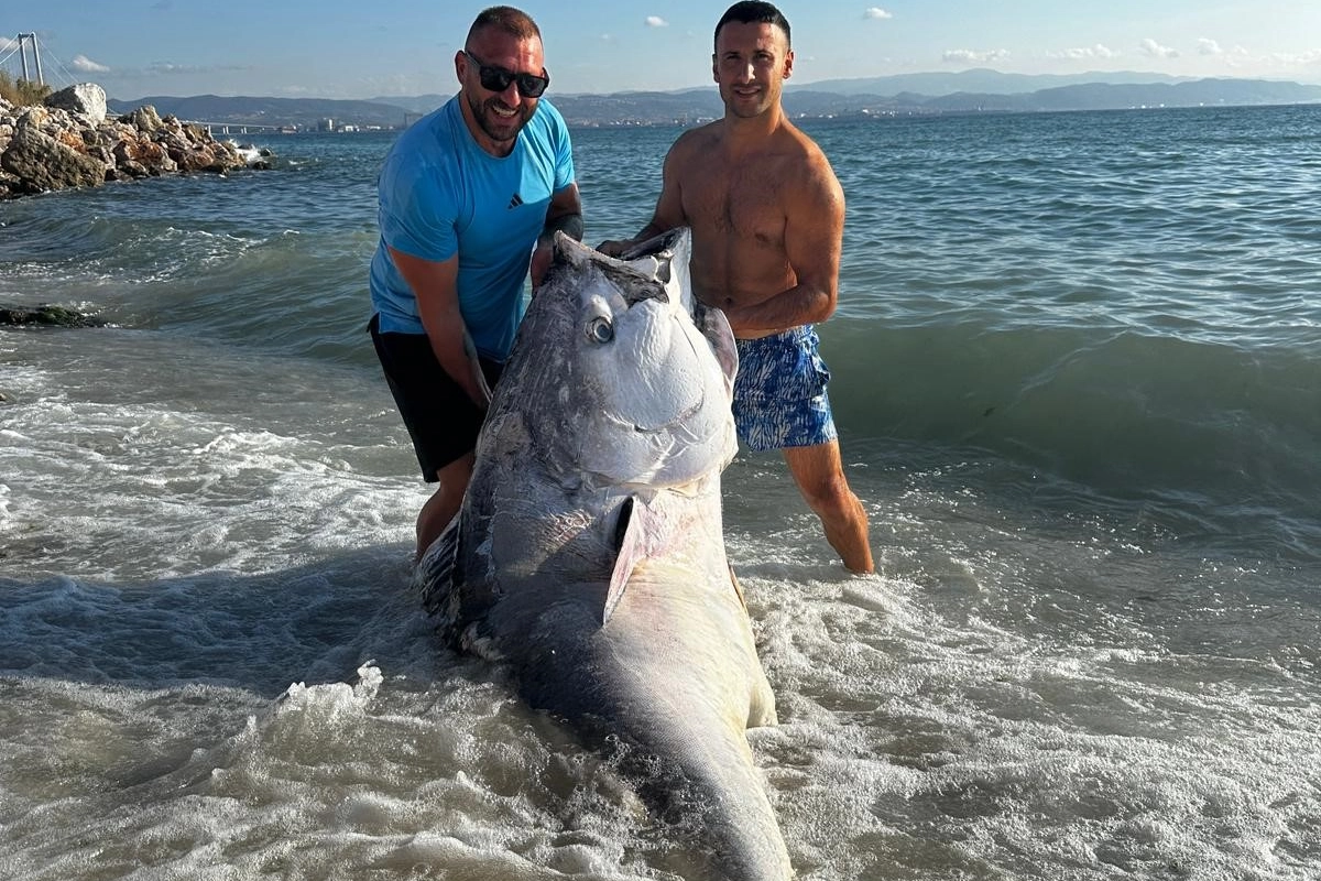 Kocaeli’nin Gebze ilçesi kıyılarında avlanmak için denize açılan Görkem Gürsoy ve Volkan Topçu, ender görülen mavi yüzgeçli, 2.5 metre uzunluğunda, 320 kilogram ağırlığında orkinos avladı. İki dalgıç saplanan zıpkınla uzaklaşan orkinosu, üçüncü günün sonunda bularak kıyıya çıkarttı.