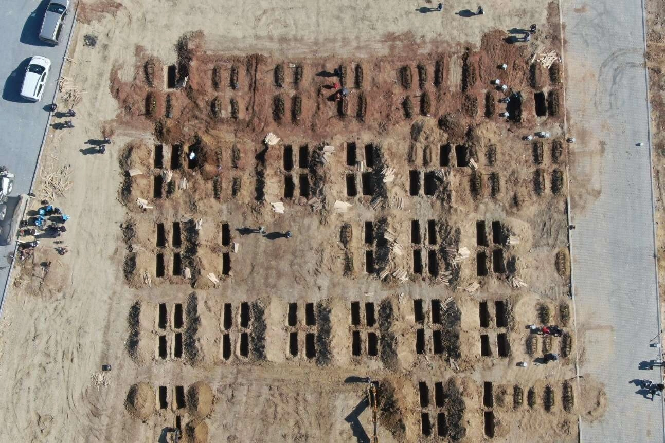 Açılan mezarlara bir taraftan defin yapılırken iş makinalarıyla yenileri de açılmaya devam ediyor. Depremde ölen yakınını toprağa veren vatandaşlar gözyaşı döküp ağıt yaktı. Bu çalışmalar dron ile de görüntülendi.