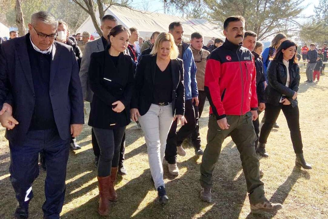 Almanya Dışişleri Bakanı Annalena Baerbock ve İçişleri Bakanı Nancy Faeser, dün 7.7 büyüklüğündeki depremin merkez üssü Kahramanmaraş'ın Pazarcık ilçesine geldi. Baerbock ve Faeser, Pazarcık'ta koordinatörü Kırıkkale Valisi Bülent Tekbıyıkoğlu'ndan bölgedeki son durum hakkında bilgi aldı.