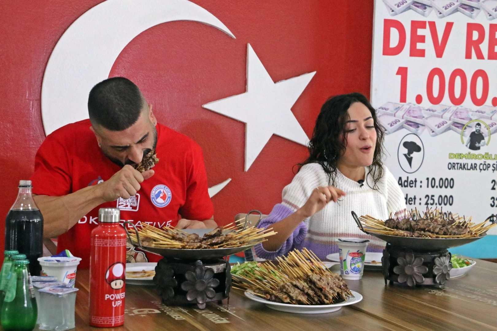 Muratpaşa ilçesinde bir restoranda düzenlenen çöp şiş yarışmasına 33 yaşındaki Avustralyalı James Webb adlı turist damga vurdu. Webb ile daha önce 46 dakikada 315 çöp şiş yiyerek rekor kıran Ceren Yılmaz Ay, 10 bin lira ödül ve tam altın için yarıştı. Yarışmanın başlamasından 4 dakika sonrası rakibinin 200 çöp şiş yediğini gören Ceren, bir süre sonra yemeği bırakıp onu izlemeye başladı. Restoran sahibi ile rakibi şaşkınlık içerisinde onu izledi