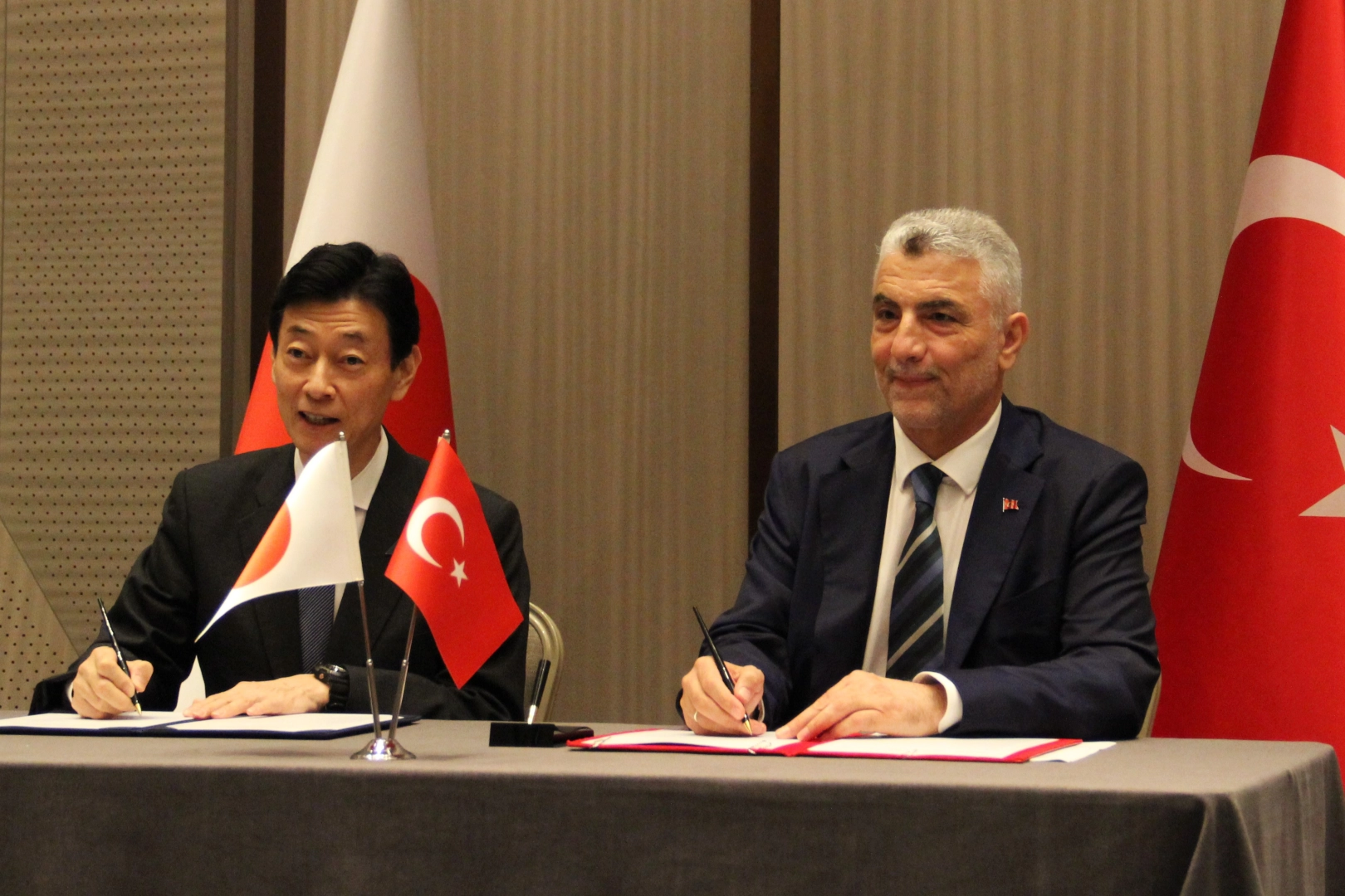 Ticaret Bakanı Prof. Dr. Ömer Bolat, Japon Dış Ticaret Teşkilatı (JETRO) tarafından düzenlenen Japonya-Türkiye İş Forumu’na katıldı. Forum öncesi Ticaret Bakanı Prof. Dr. Ömer Bolat ile Japonya Ekonomi, Ticaret ve Sanayi Bakanı Yasutoshi Nishimura arasında bir görüşme gerçekleştirildi. Görüşme sonrasında Türkiye ile Japonya arasında ticaret, yatırım, ekonomik iş birliği konularını içeren ortak deklarasyon imzalandı. Bakan Bolat imza töreninde şöyle konuştu: ''İki ülke arasındaki karşılıklı ticaretin 5 milyar doları aşmasından büyük memnuniyet duyuyoruz. Bu sene sonunda da 6 milyar dolara ulaşacağımıza inanıyoruz. İki ülke arsındaki ticaret ve yatırım alanlarındaki işbirliğini teşvik etmek için daha önce kurulmuş olan Türkiye-Japonya Ticaret ve Yatırım Zirvesi’ni, mümkün olan en kısa sürede Tokyo’da gerçekleştirme kararını aldık. Ülkemizdeki deprem felaketinden sonra durmuş olan Japonya-Türkiye Ekonomik Ortaklık anlaşmasını müzakerelerine teknik düzeyde yeniden başlama kararı aldık. Her iki ülkeye dengeli ticarete hizmet edecek şekilde kapsamlı görüşmeler yeniden başlayacak."