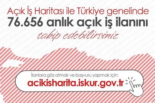 Çalışma ve Sosyal Güvenlik Bakanı Vedat Işıkhan, Türkiye genelinde 76 bin 656 açık iş ilanı olduğunu duyurdu. Çalışma ve Sosyal Güvenlik Bakanı Işıkhan, sosyal medya hesabından açık iş istatistiklerine ilişkin açıklamalarda bulundu. Bakan Işıkhan, “Kamu istihdam kurumumuz İŞKUR'un hayata geçirmiş olduğu Açık İş Haritası ile Türkiye genelinde 76 bin 656 anlık açık iş ilanını takip edebilir ve açık işleri görüntüleyebilirsiniz" ifadesine yer verdi. Işıkhan, işverenlerin oluşturduğu açık iş ilanlarına "acikisharita.iskur.gov.tr" internet adresinden ulaşılabildiğini belirtti.