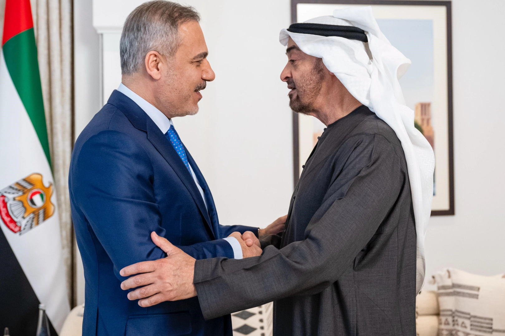 Dışişleri Bakanı Hakan Fidan, Birleşik Arap Emirlikleri (BAE) Devlet Başkanı Şeyh Muhammed bin Zayed Al Nahyan tarafından kabul edildi. Dışişleri Bakanı Hakan Fidan, resmi ziyaret kapsamında Birleşik Arap Emirlikleri’ne (BAE) geldi. Bakan Fidan, BAE Devlet Başkanı Şeyh Muhammed bin Zayed Al Nahyan tarafından kabul edildi.