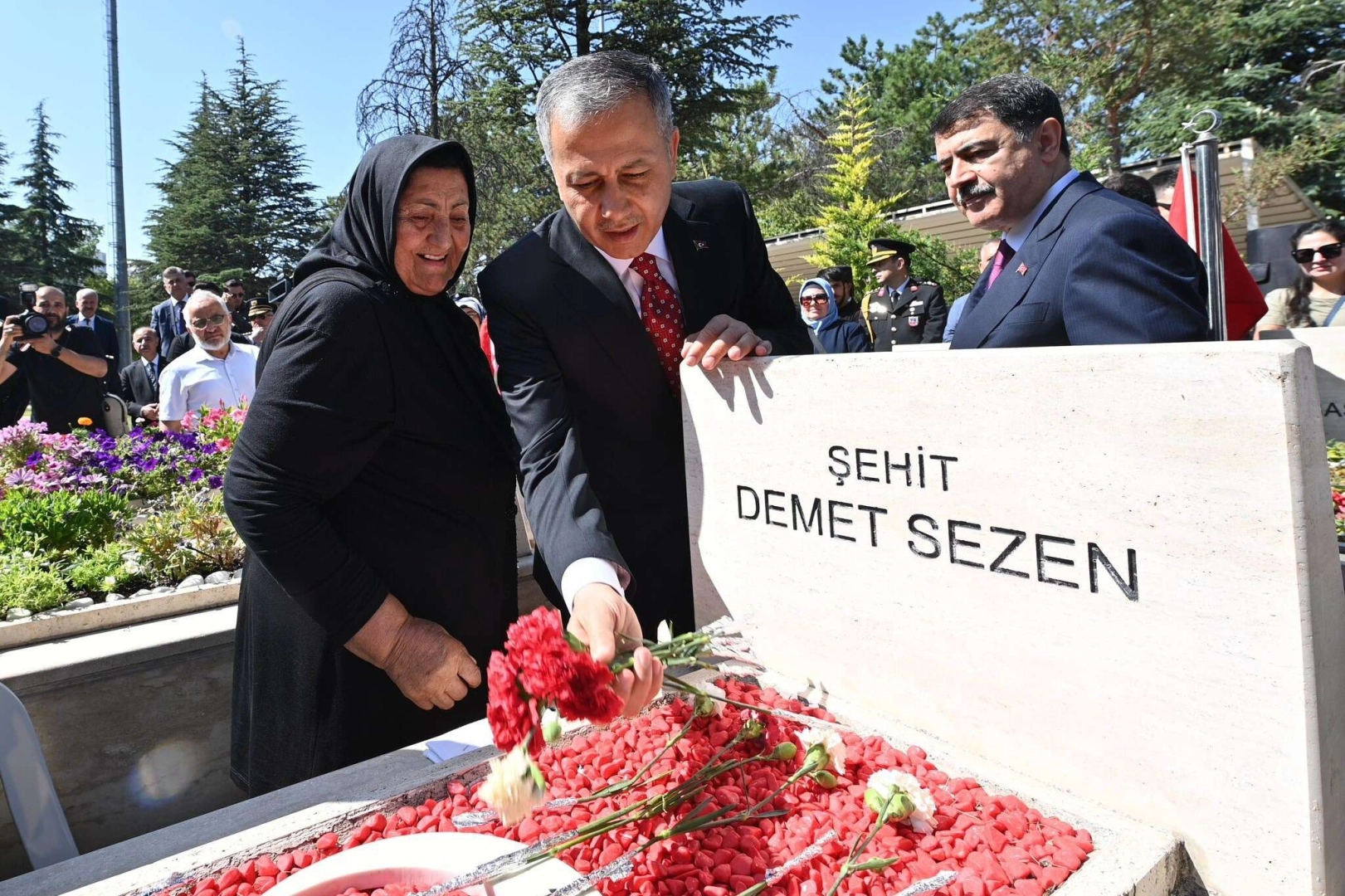 Burada yapılan Kur-an-ı Kerim tilaveti ve edilen duaların ardından Bakan Yerlikaya, polis şehitlerinin ailelere de baş sağlığı dileyerek, kabirlerine karanfil bıraktı.