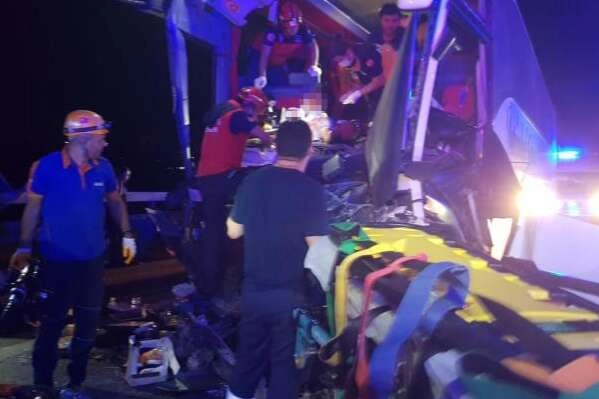 Sürücüler ile otobüsteki muavin, yedek şoför ve 41 yolcunun yaralandığı kaza yerine 112 Acil Sağlık, polis ve jandarma ekipleri sevk edildi. Sağlık ekiplerince kentteki hastanelere kaldırılan yaralılardan otobüs sürücüsü Ayhan Karadeniz ile muavin Emir Metin'in sağlık durumunun ciddiyetini koruduğu öğrenildi.